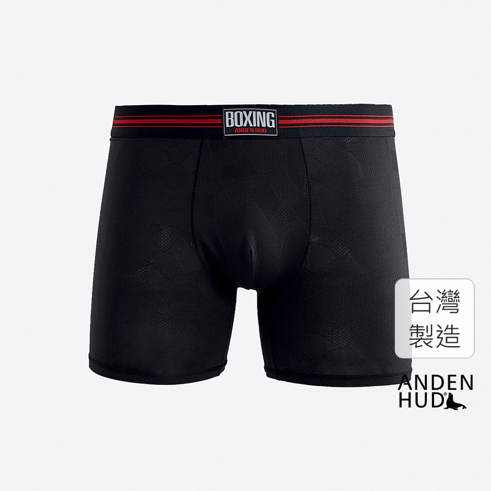 【Anden Hud】男款_吸濕排汗機能系列.緹花長版平口內褲(黑-紅拳擊織標) 台灣製M|L|XL|XXL|SUnderwearAnden Hud 台灣製內著 官方旗艦店