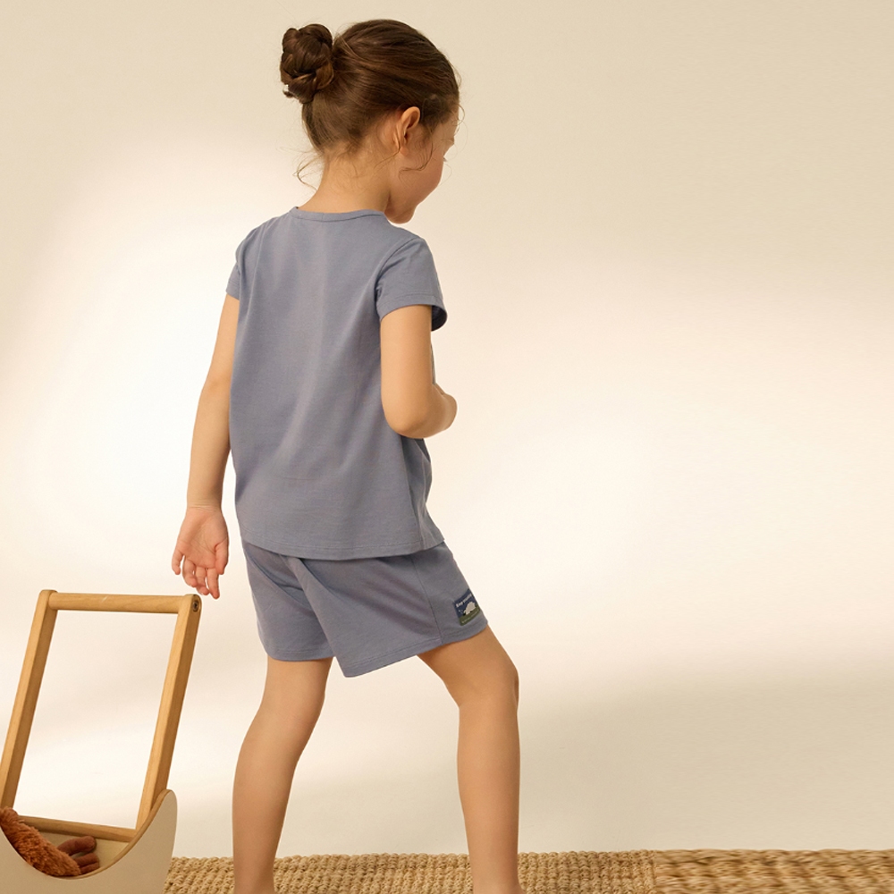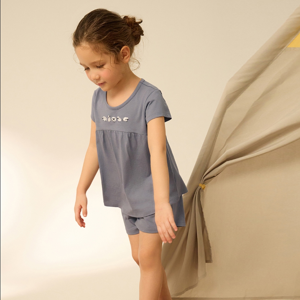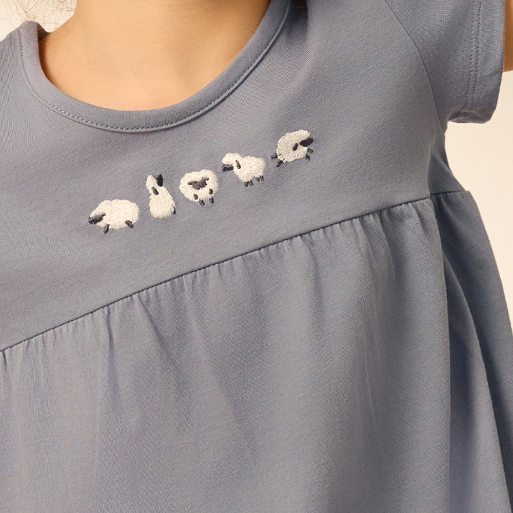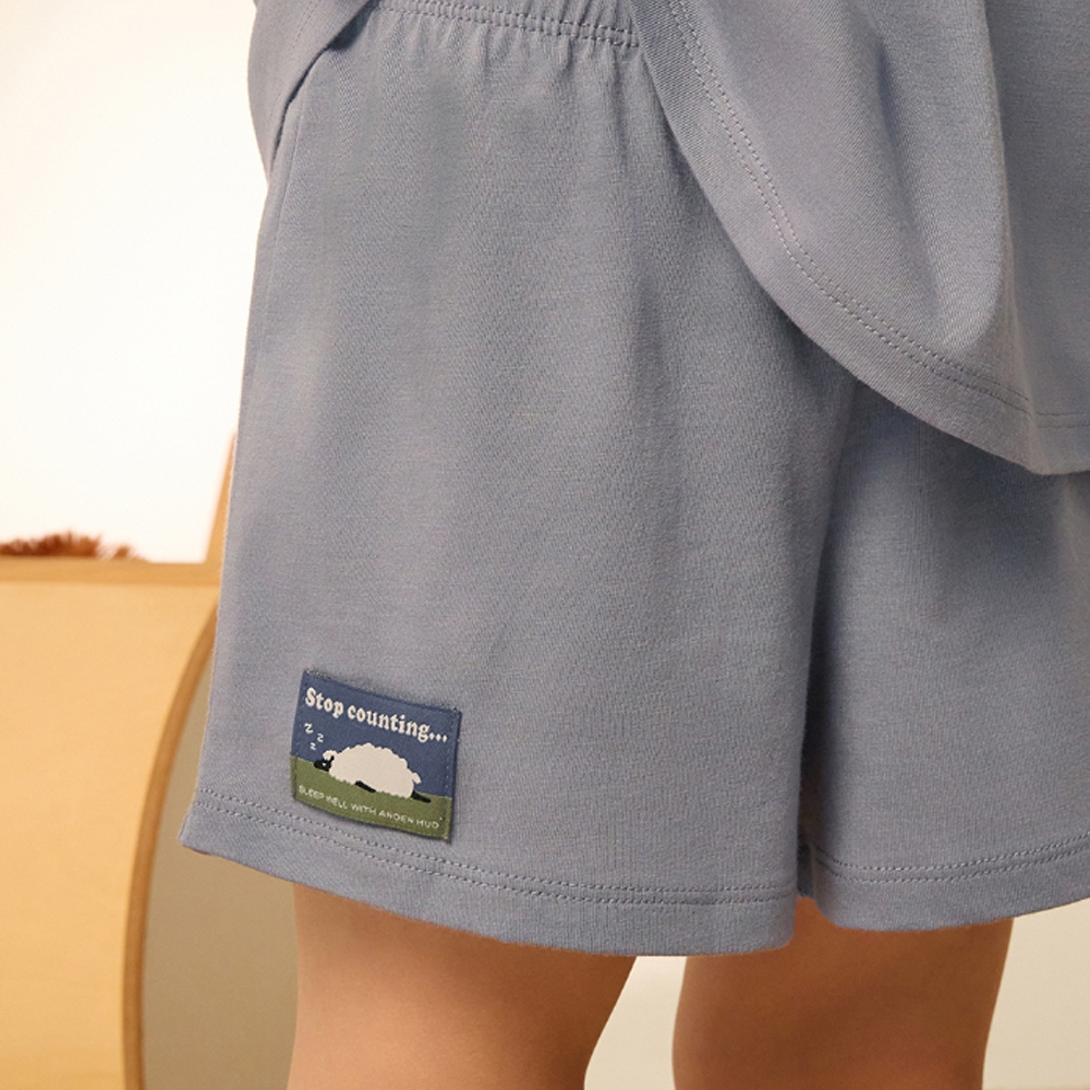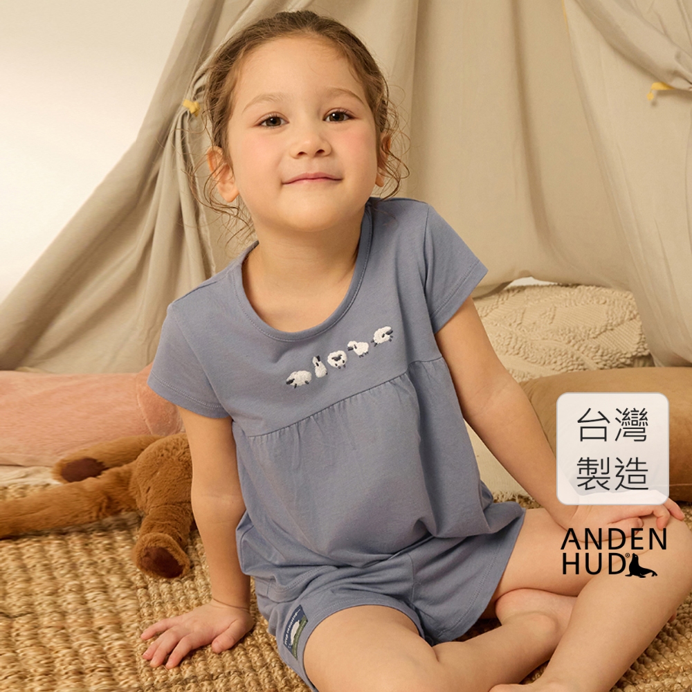 【Anden Hud】兒童成套_暖陽樂園.莫代爾棉細摺短袖睡衣(水銀藍-刺繡數綿羊) 台灣製110|120|130|140|150SleepwearAnden Hud 台灣製內著 官方旗艦店