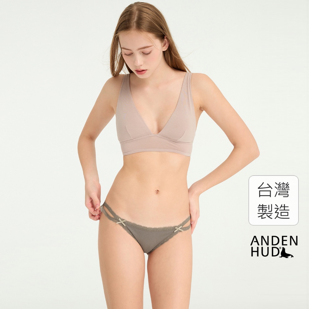 【Anden Hud】暖心烘焙.雙蕾絲邊高衩低腰三角內褲(褐灰-虛線蝴蝶結) 純棉台灣製M|L|XLPantiesAnden Hud 台灣製內著 官方旗艦店