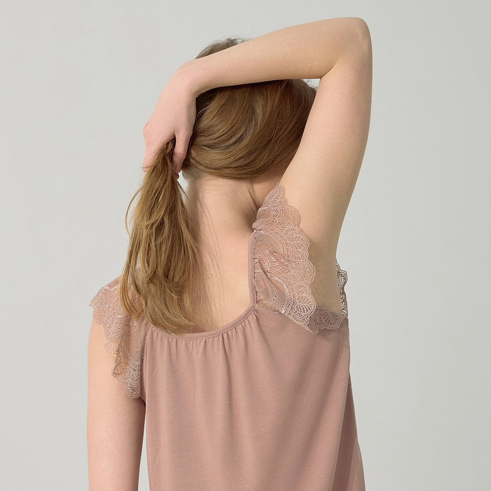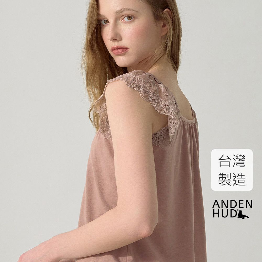 【Anden Hud】上衣_療癒烘焙.蕾絲拼接短袖睡衣(山茶棕) 台灣製S|M|L|XLPajamasAnden Hud 台灣製內著 官方旗艦店