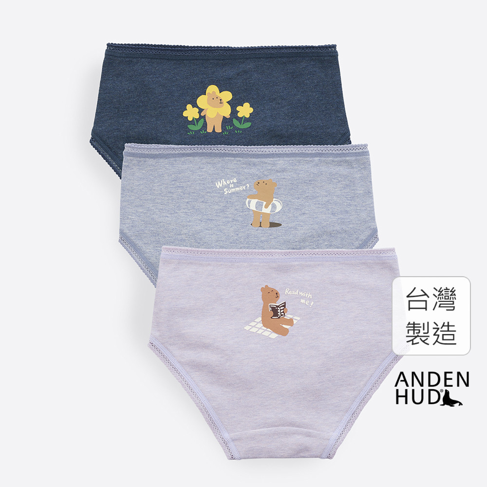 【Anden Hud】女童三入組_ 抗菌系列.球球緊帶三角內褲(丹寧小棕熊) 純棉台灣製110|120|130|140|150Underwear & InnerwearAnden Hud 台灣製內著 官方旗艦店