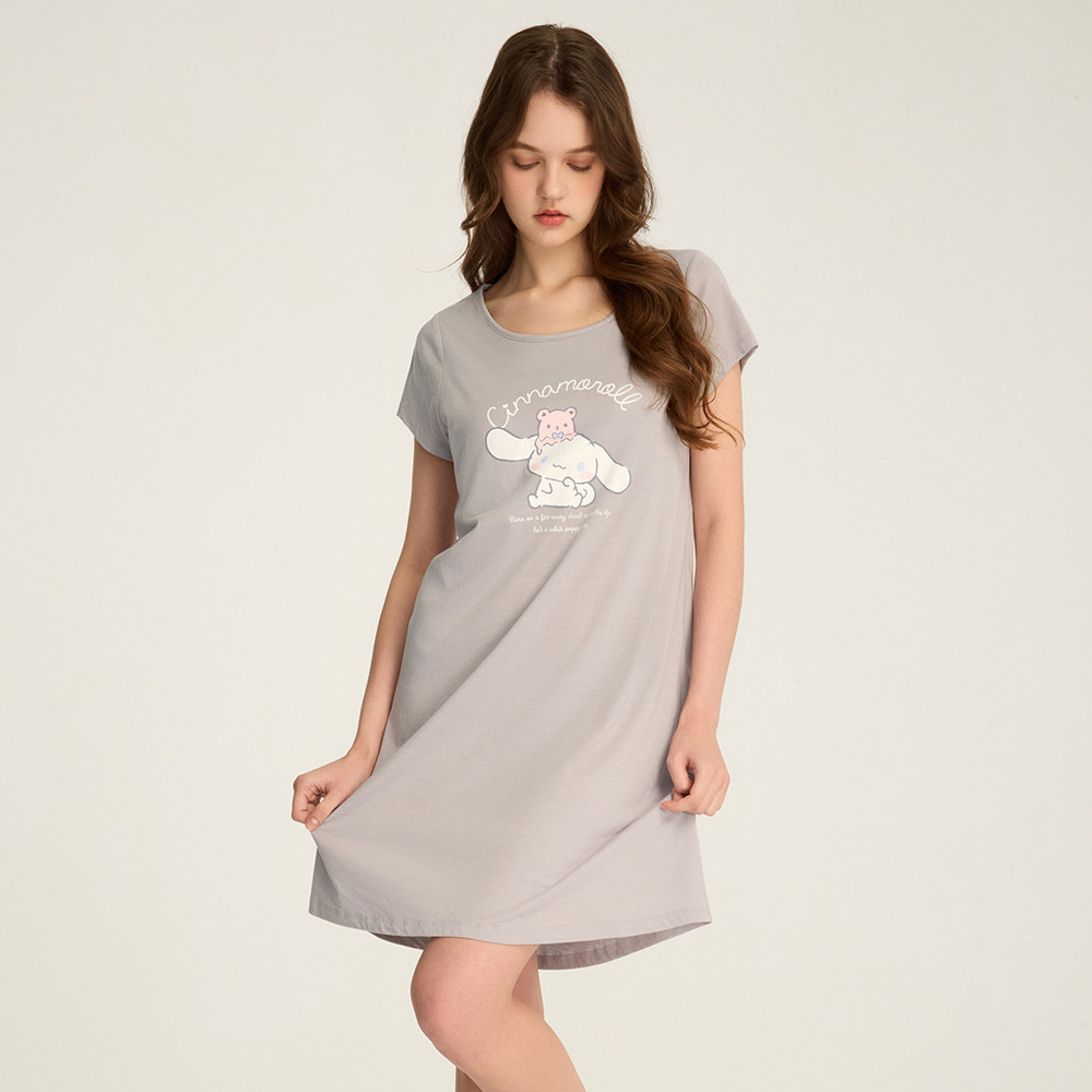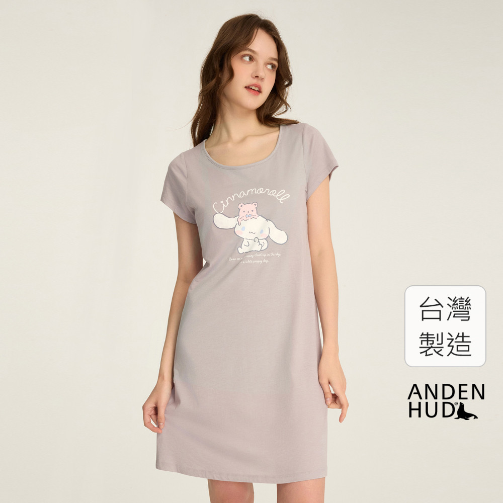 【Anden Hud】連身_大耳狗喜拿系列.吸濕排汗 A-Line 短袖罩杯睡衣(鳶尾紫-融化冰淇淋) 海外禁售S|M|L|XLNight DressesAnden Hud 台灣製內著 官方旗艦店