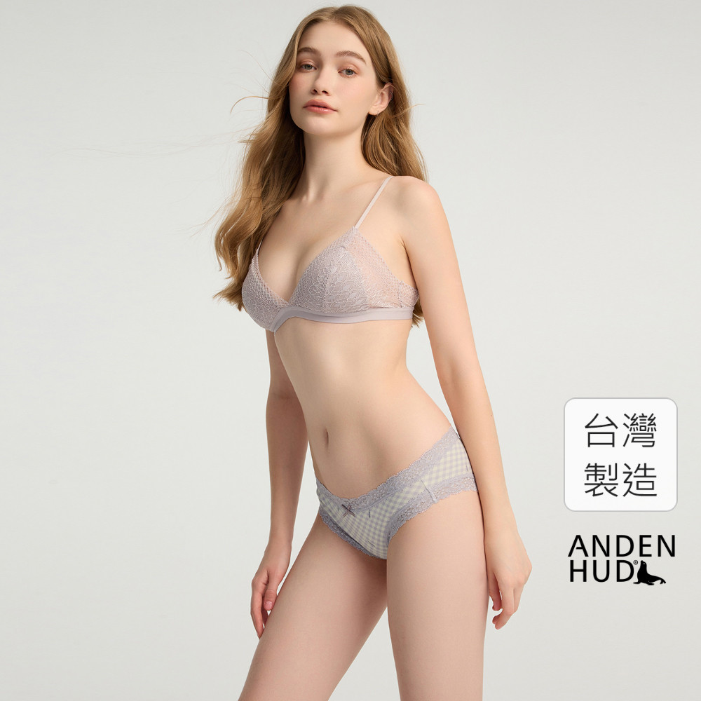 【Anden Hud】法式渡假.織帶2/3包臀中腰三角內褲(灰瘀紫-薰衣格調) 純棉台灣製M|L|XLPantiesAnden Hud 台灣製內著 官方旗艦店