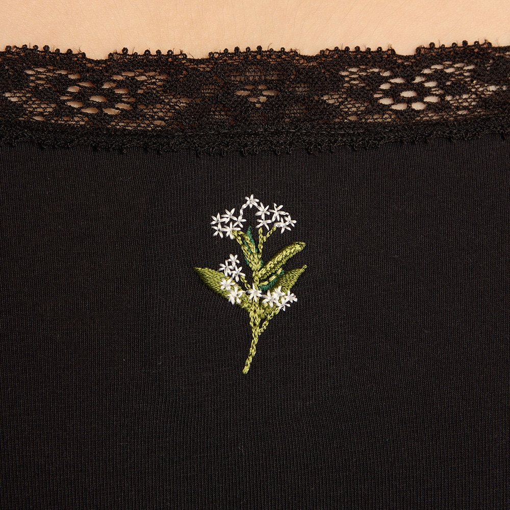 【Anden Hud】Joy Days.織帶2/3包臀中腰三角內褲(黑-刺繡白花) 純棉台灣製M|L|XLPantiesAnden Hud 台灣製內著 官方旗艦店