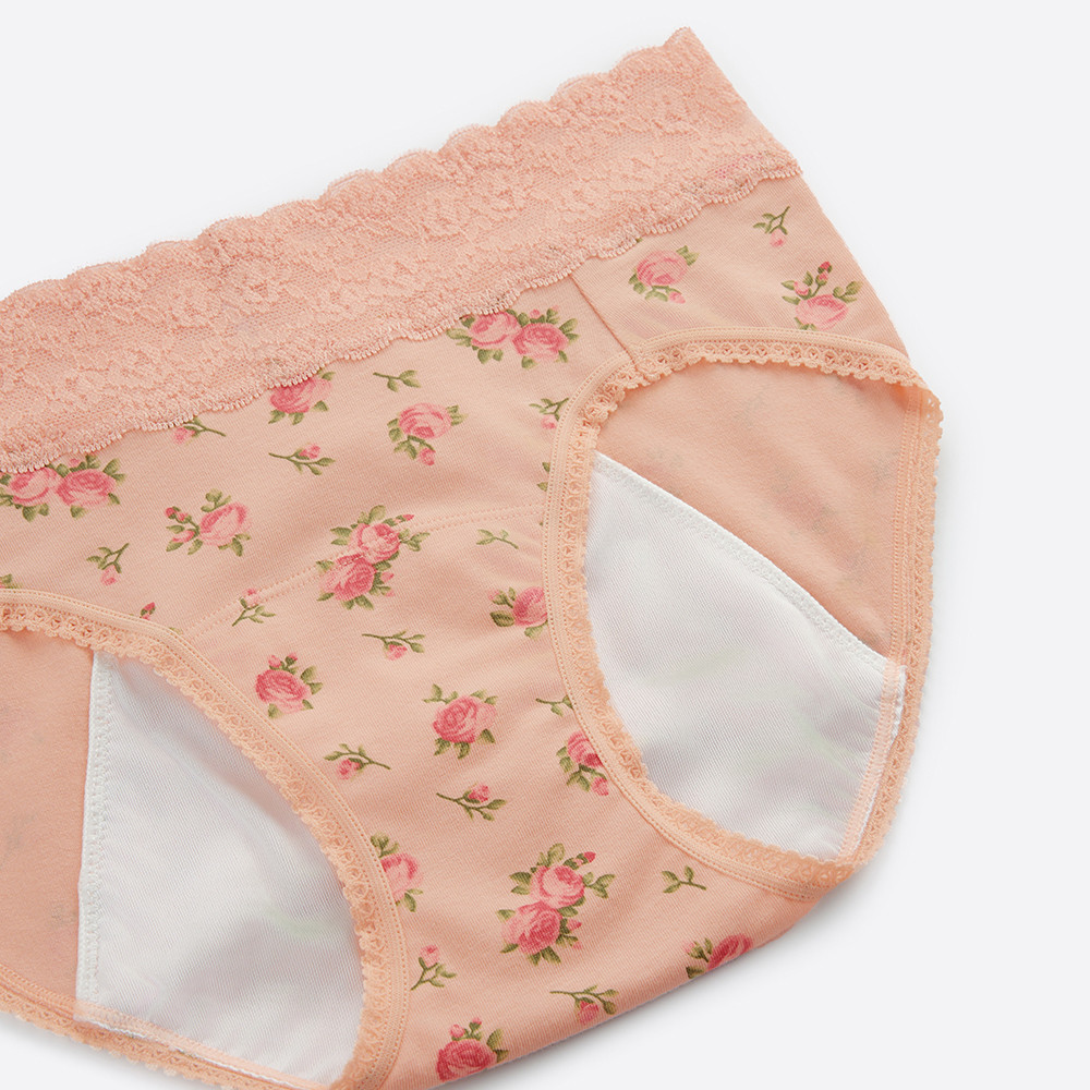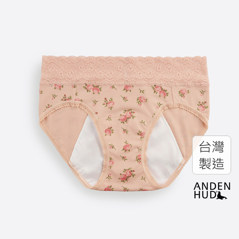 【Anden Hud】Limited Edition.蕾絲中腰生理褲(牛奶粉-碎花玫瑰) 純棉台灣製M|L|XLPantiesAnden Hud 台灣製內著 官方旗艦店