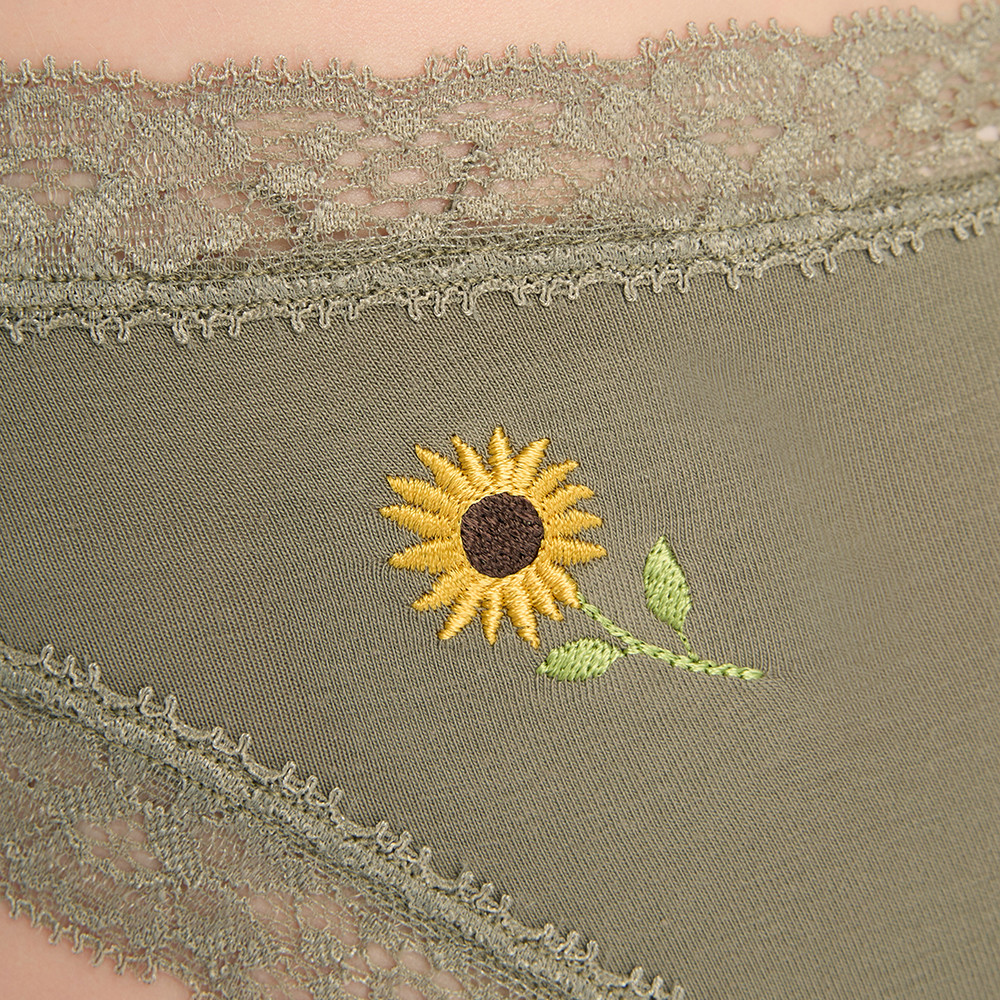 【Anden Hud】法式渡假.織帶2/3包臀中腰三角內褲(橄欖綠-刺繡向日葵) 純棉台灣製M|L|XLPantiesAnden Hud 台灣製內著 官方旗艦店