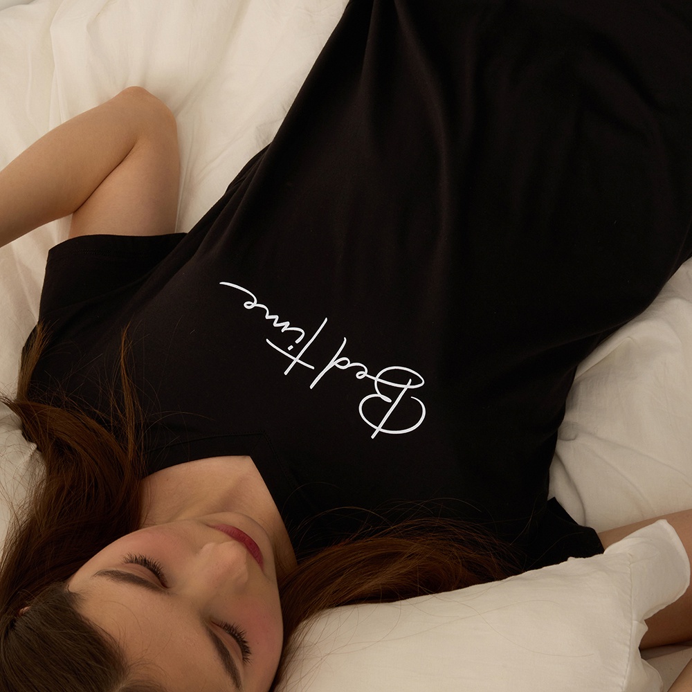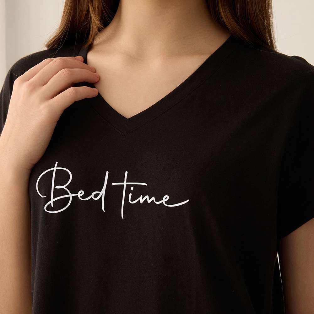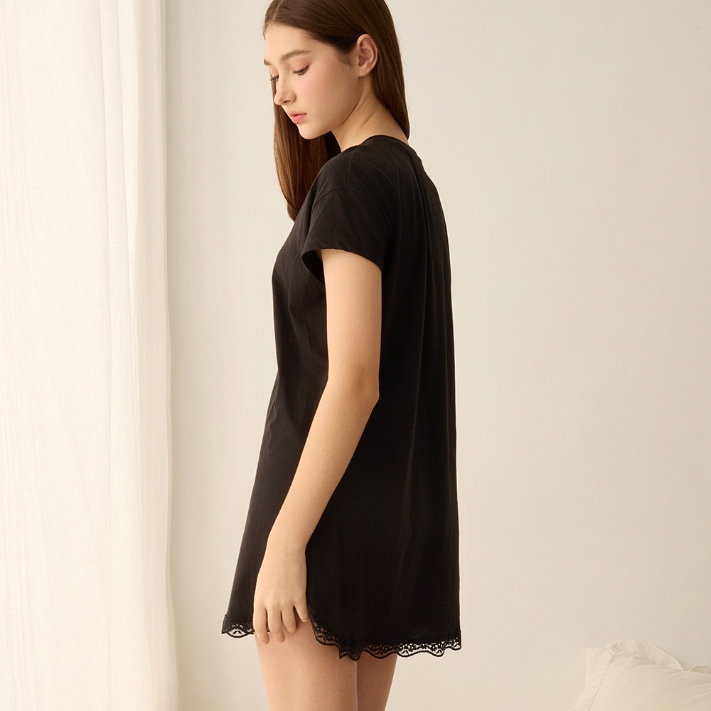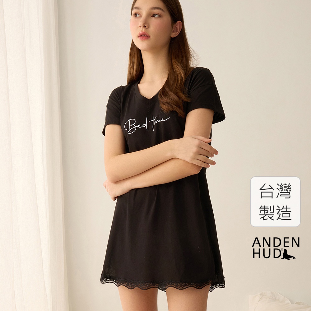 【Anden Hud】連身_陽光微暖.V領蕾絲拼接短袖睡衣(黑色-Bed time) 台灣製S|M|L|XLNight DressesAnden Hud 台灣製內著 官方旗艦店