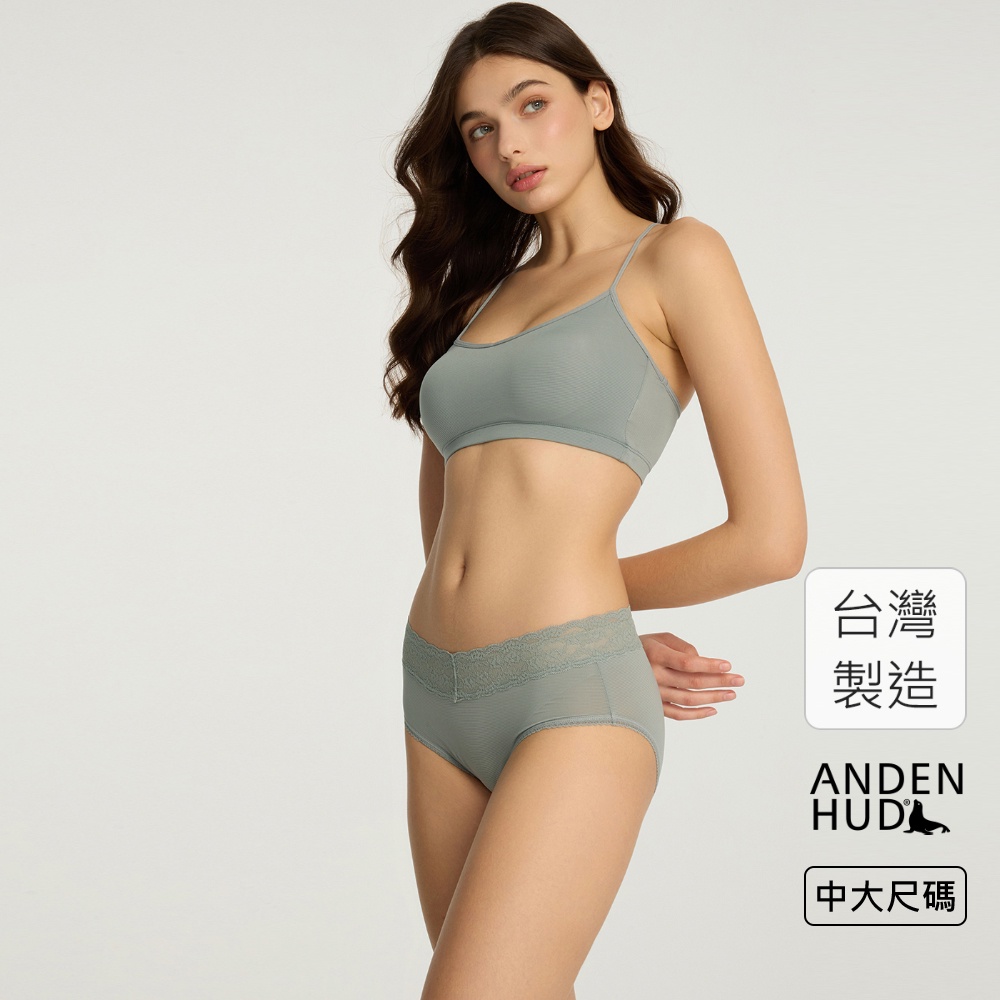 【Anden Hud】XXL 冰絲涼感抗菌.窄版V蕾絲高腰三角內褲(冰山綠) 純棉台灣製XXLPantiesAnden Hud 台灣製內著 官方旗艦店