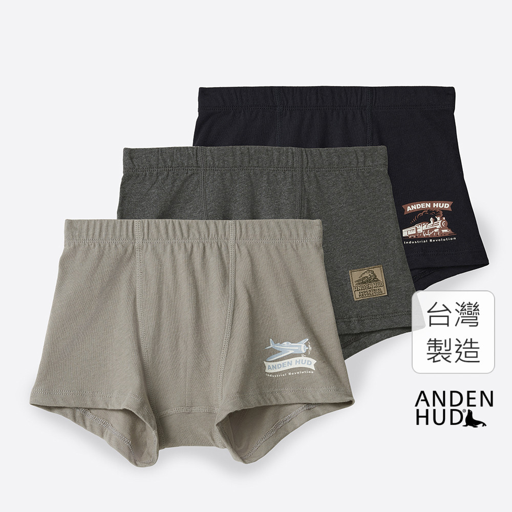 【Anden Hud】男童三入組_工業革命.內包緊帶平口內褲(復古交通工具) 純棉台灣製120|130|140|150Underwear & InnerwearAnden Hud 台灣製內著 官方旗艦店