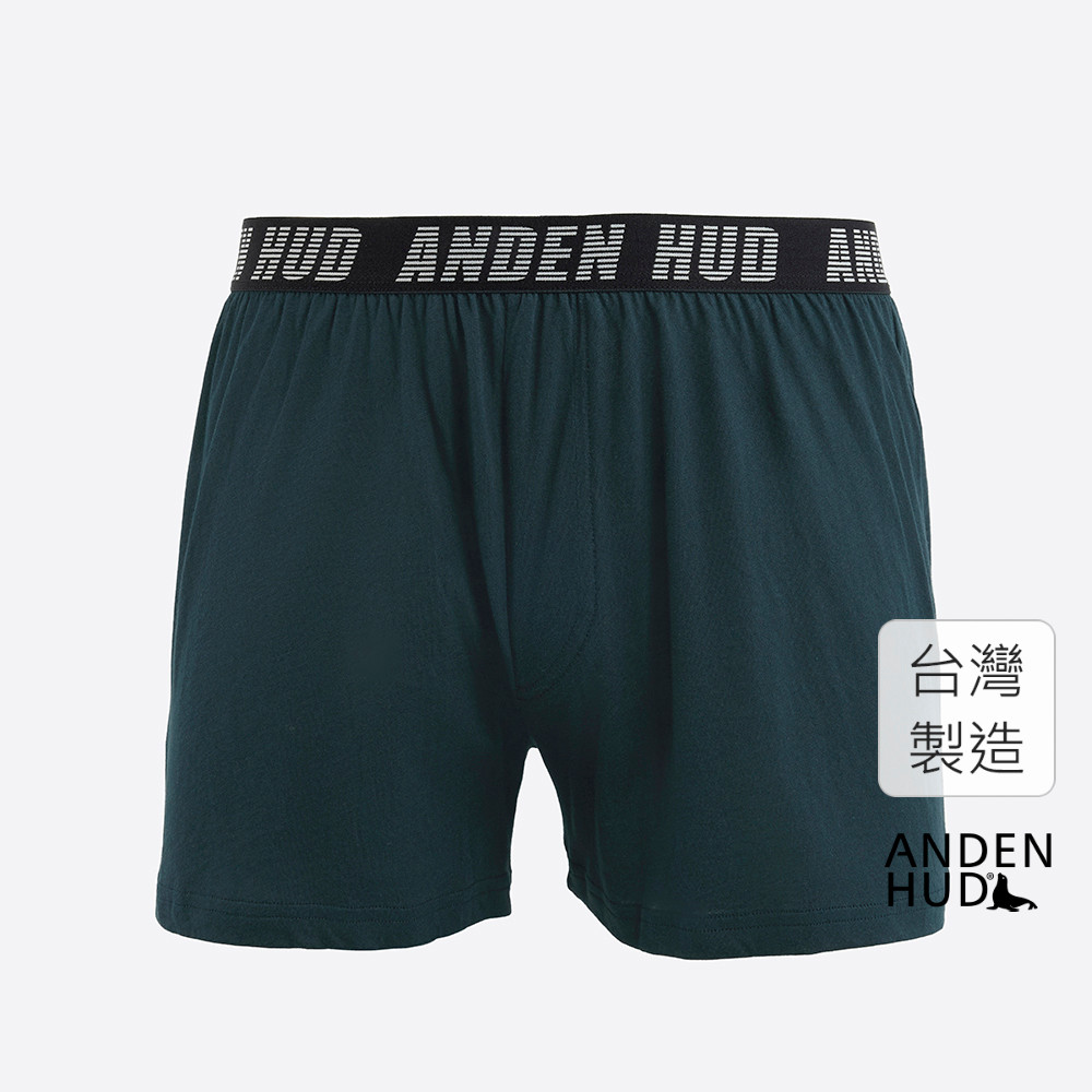 【Anden Hud】男款_Newtro Street.不開襟純棉寬鬆四角內褲(墨黑藍-黑橫條緊帶) 純棉台灣製M|L|XLUnderwearAnden Hud 台灣製內著 官方旗艦店