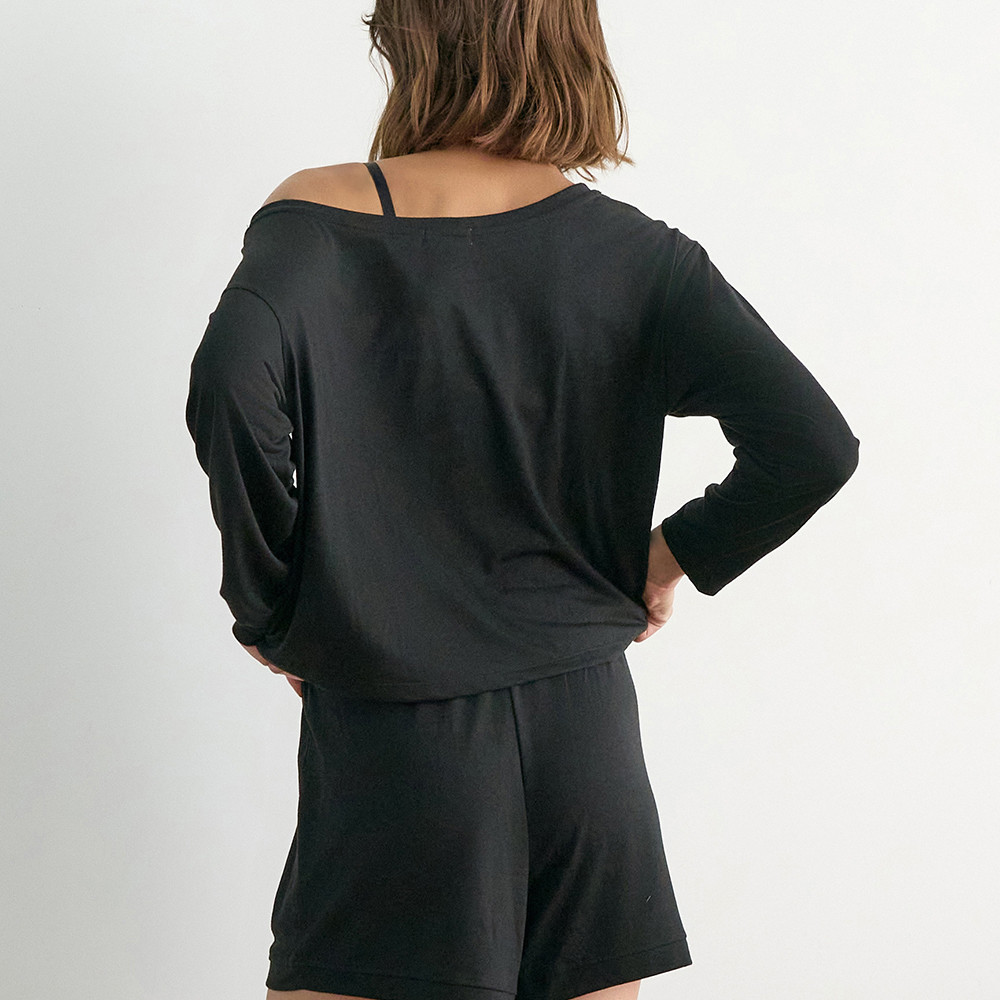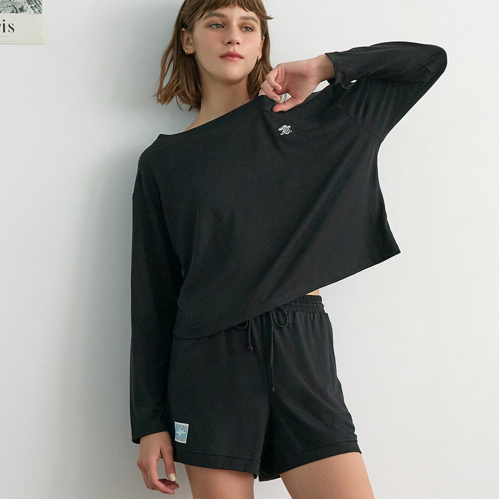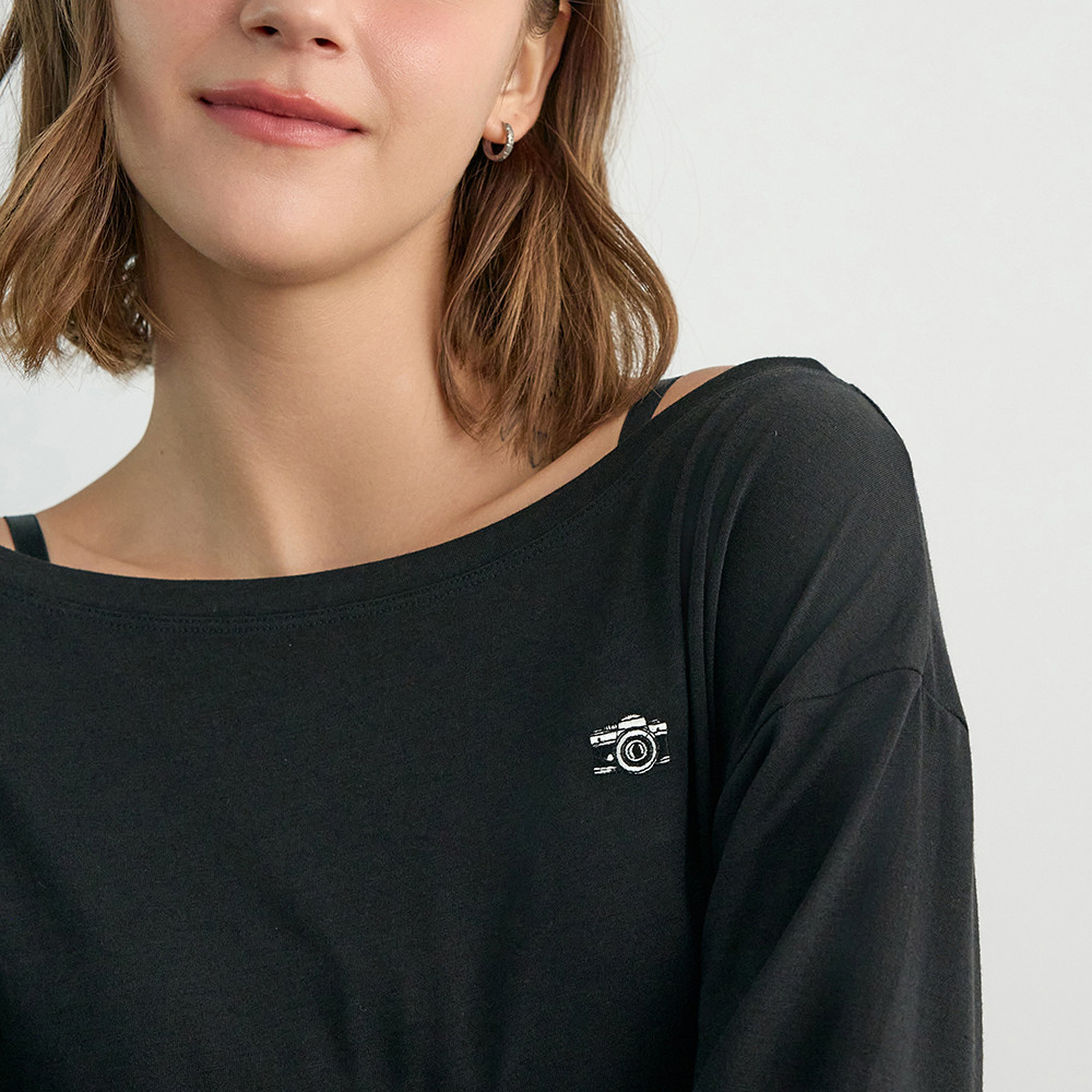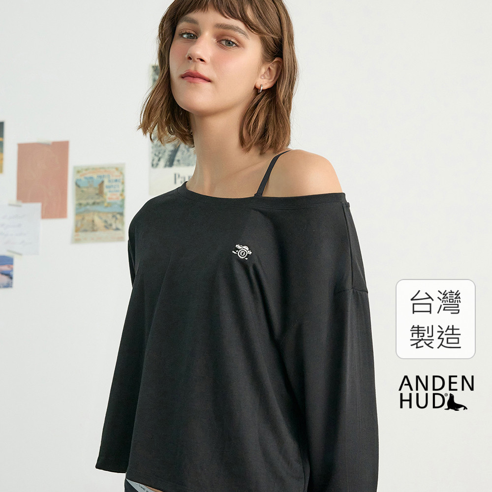 【Anden Hud】上衣_Travel memory.大圓領露肩長袖上衣(黑色-刺繡相機) 台灣製S|M|L|XLPajamasAnden Hud 台灣製內著 官方旗艦店