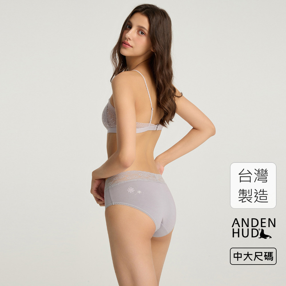 【Anden Hud】XXL 暖冬序曲.窄版V蕾絲高腰三角內褲(莉莉紫-冰晶雪花) 純棉台灣製XXLPantiesAnden Hud 台灣製內著 官方旗艦店