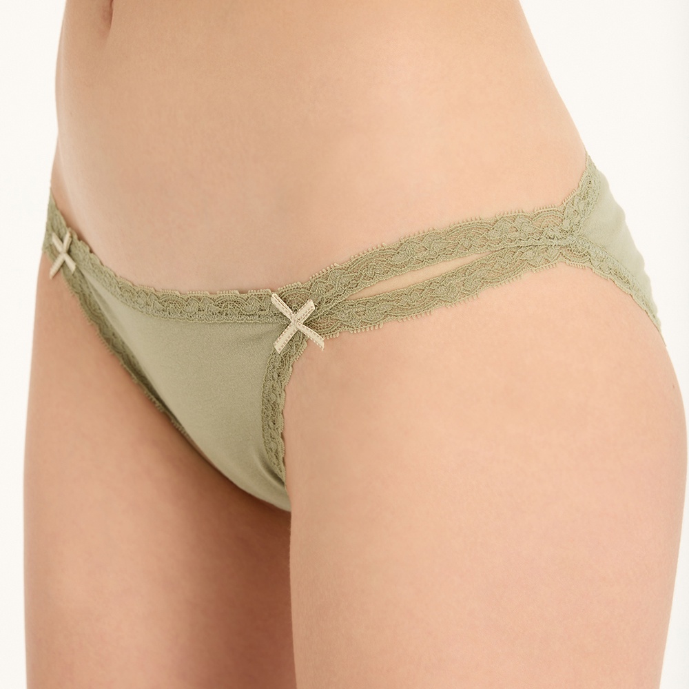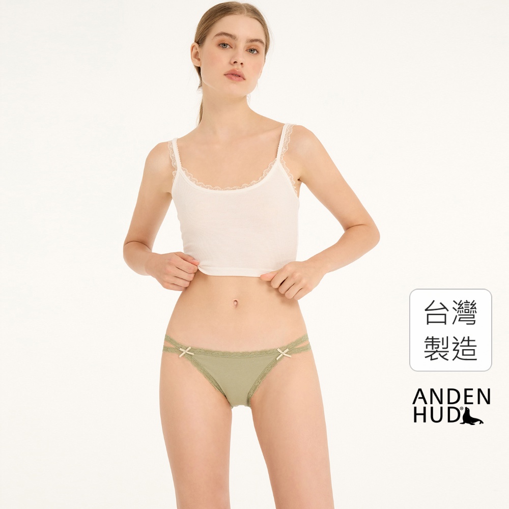 【Anden Hud】抗菌系列.雙蕾絲邊高衩低腰三角內褲(慕斯綠-虛線蝴蝶結) 純棉台灣製M|L|XLPantiesAnden Hud 台灣製內著 官方旗艦店