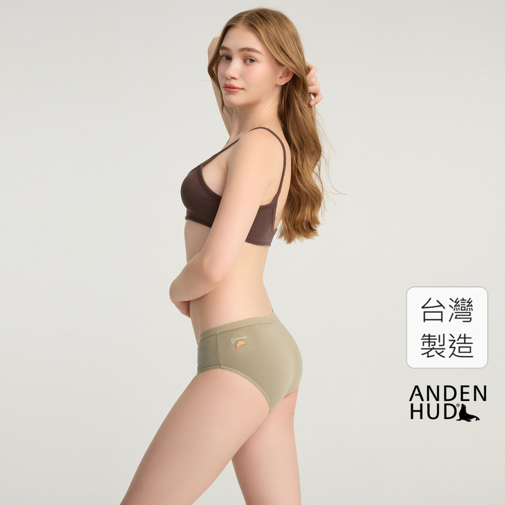 【Anden Hud】夢中南法.緊帶中腰三角內褲(橄欖綠-刺繡可頌) 純棉台灣製M|L|XLPantiesAnden Hud 台灣製內著 官方旗艦店
