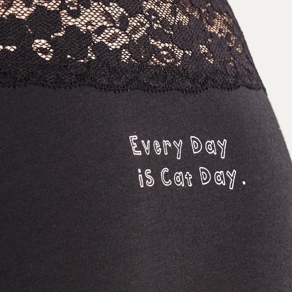 【Anden Hud】By your side.抓皺蕾絲中腰三角內褲(黑-cat day) 純棉台灣製M|L|XLPantiesAnden Hud 台灣製內著 官方旗艦店