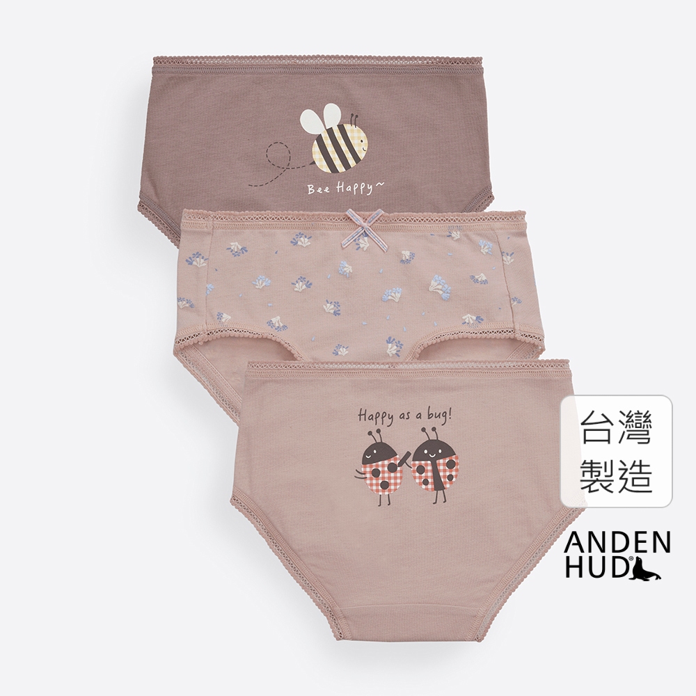 【Anden Hud】女童三入組_ 抗菌系列.球球緊帶三角內褲(花園小昆蟲) 純棉台灣製110|120|130|140|150Underwear & InnerwearAnden Hud 台灣製內著 官方旗艦店