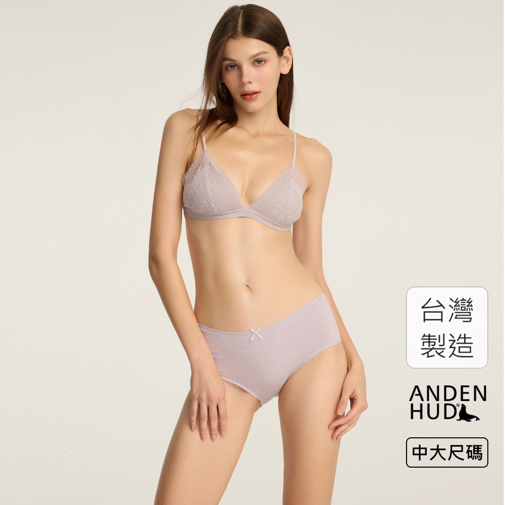 【Anden Hud】XXL 秘密花園.花邊高腰三角內褲(麻紫-虛線蝴蝶結) 純棉台灣製XXLPantiesAnden Hud 台灣製內著 官方旗艦店