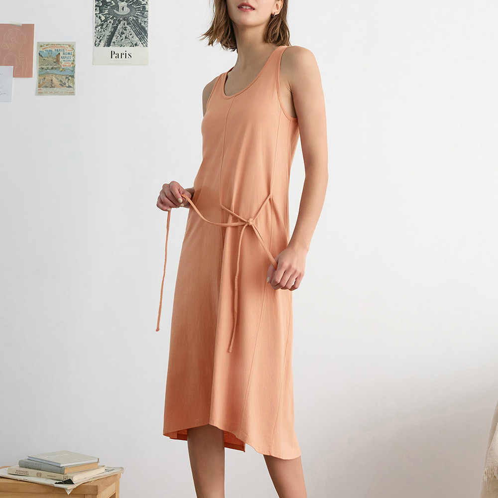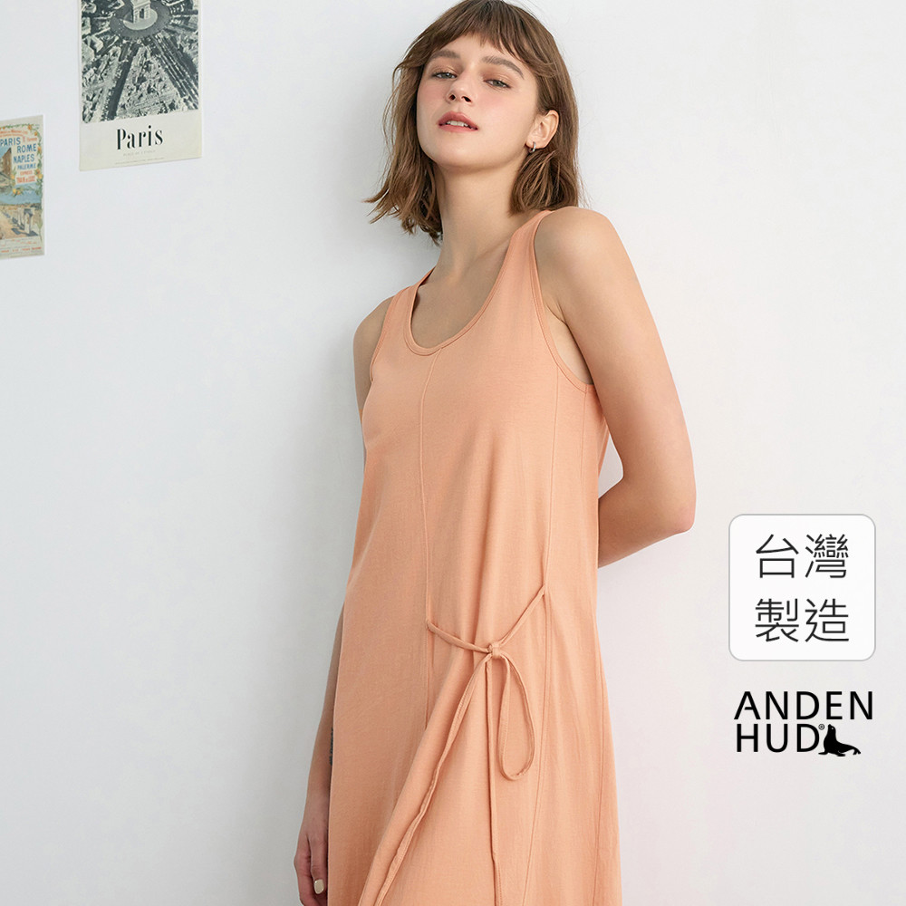 【Anden Hud】連身_Travel memory.莫代爾棉無袖綁帶睡衣(奶油咖啡) 台灣製S|M|L|XLPajamasAnden Hud 台灣製內著 官方旗艦店