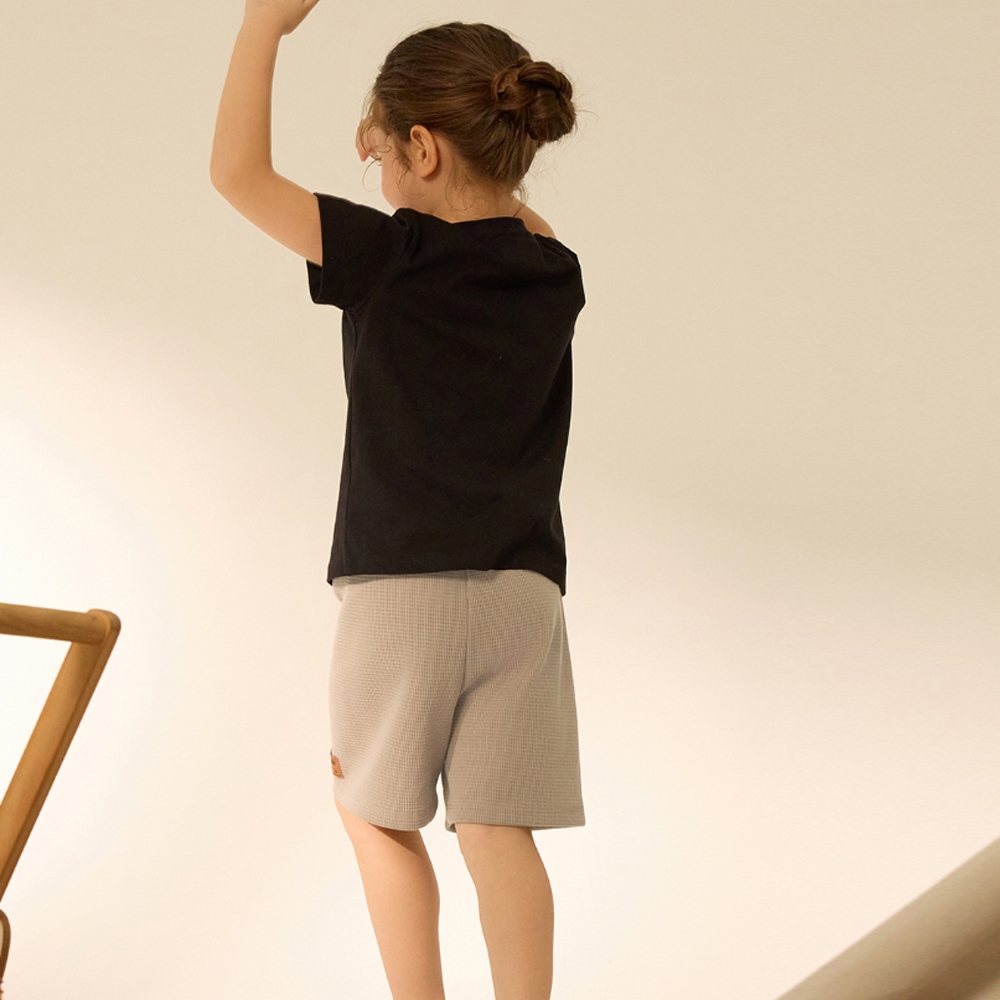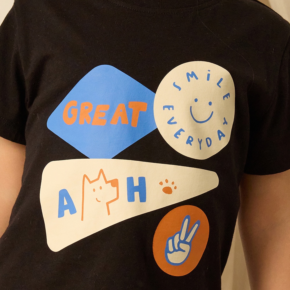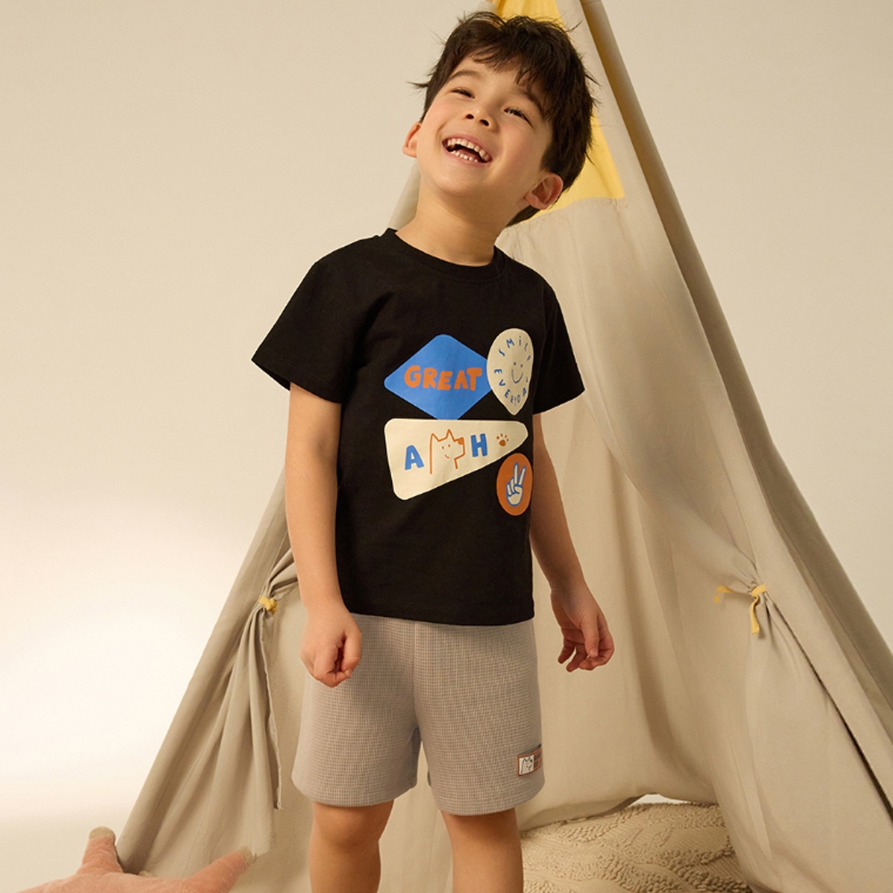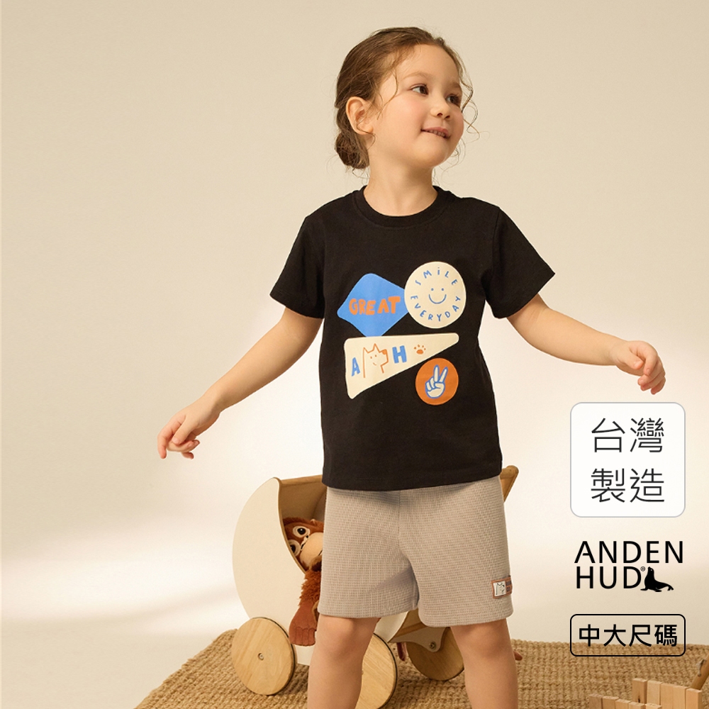 【Anden Hud】160兒童成套_暖陽樂園.圓領基本短袖睡衣(黑色-童趣徽章) 純棉台灣製160SleepwearAnden Hud 台灣製內著 官方旗艦店