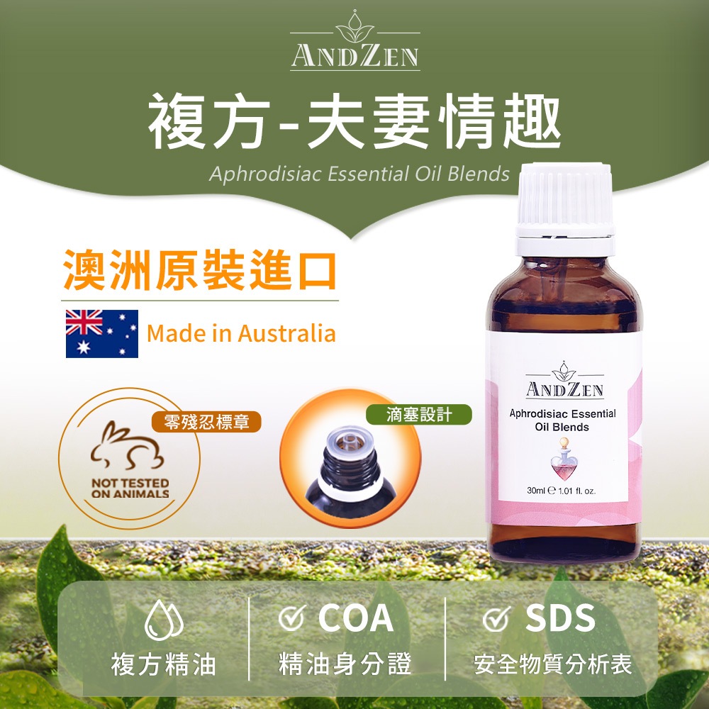 【 ANDZEN安得仁 】複方精油30ml(夫妻情趣) 澳洲 原裝 進口【 ANDZEN安得仁 】複方精油30ml(夫妻情趣) 澳洲 原裝 進口ANDZEN & WARM 品牌旗艦店 精油 純露 花水 水氧機 按摩油 擴香儀