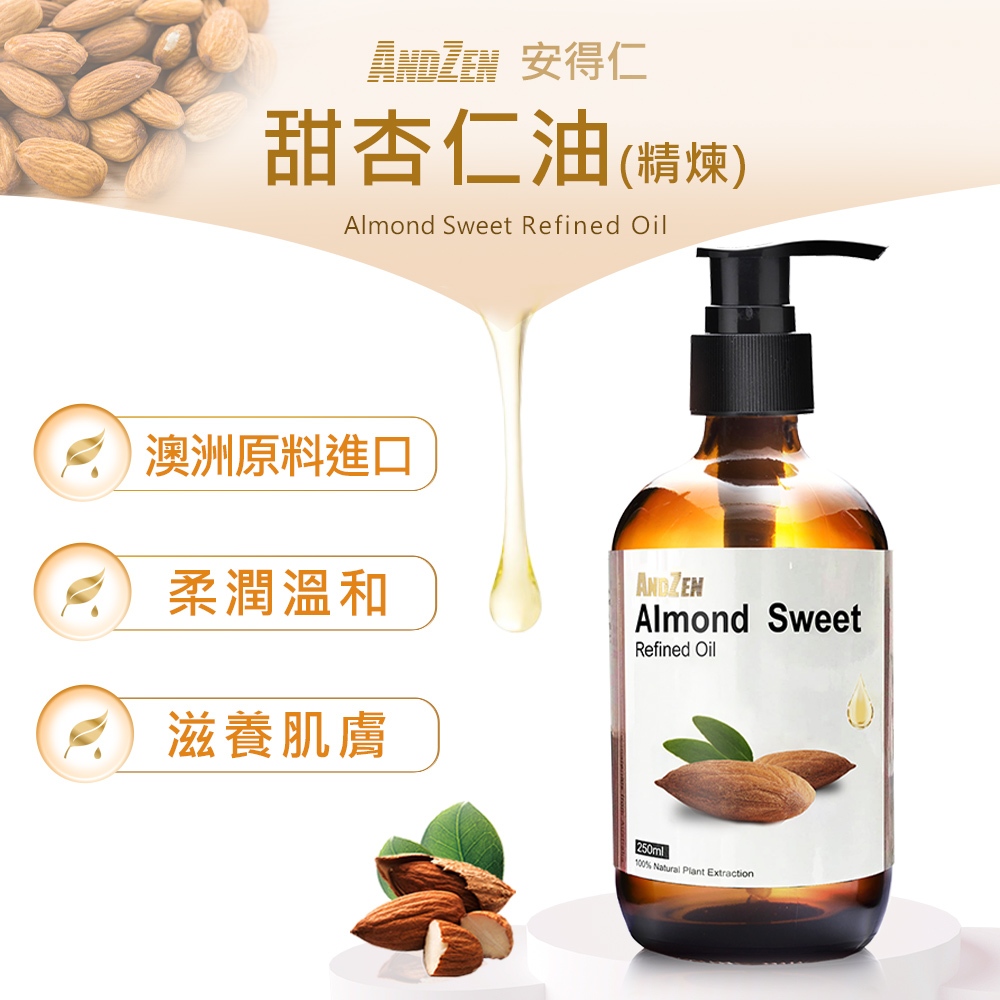 【ANDZEN安得仁】基底油250ml-甜杏仁油(壓嘴頭玻璃瓶) 天然 草本 按摩油 保濕油 基礎油【ANDZEN安得仁】基底油250ml-甜杏仁油(壓嘴頭玻璃瓶) 天然 草本 按摩油 保濕油 基礎油Massage OilANDZEN & WARM 品牌旗艦店 精油 純露 花水 水氧機 按摩油 擴香儀