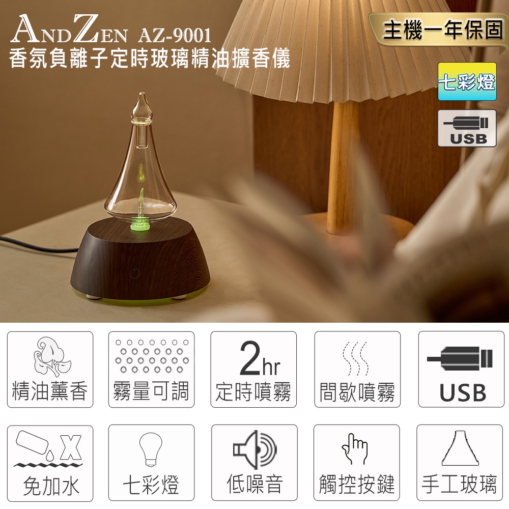 【 ANDZEN安得仁 】擴香儀AZ-9001+精油10ml x 6瓶 香氛 負離子 定時 玻璃白色|淺木紋|深木紋ANDZEN & WARM 品牌旗艦店 精油 純露 花水 水氧機 按摩油 擴香儀