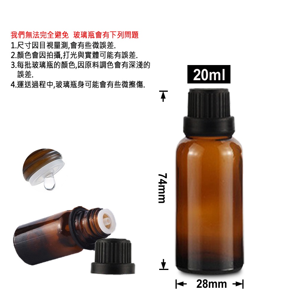 【 多件更優惠 】20ml(含蓋+滴塞)精油瓶精油空瓶精油分裝瓶玻璃瓶茶色玻璃瓶精油分享瓶茶色空瓶防盜大頭蓋