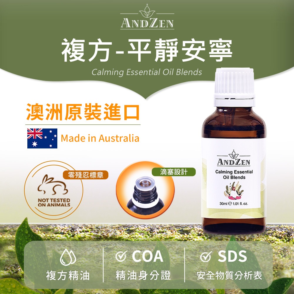 【 ANDZEN安得仁 】複方精油30ml(平靜安寧) 澳洲 原裝 進口【 ANDZEN安得仁 】複方精油30ml(平靜安寧) 澳洲 原裝 進口ANDZEN & WARM 品牌旗艦店 精油 純露 花水 水氧機 按摩油 擴香儀