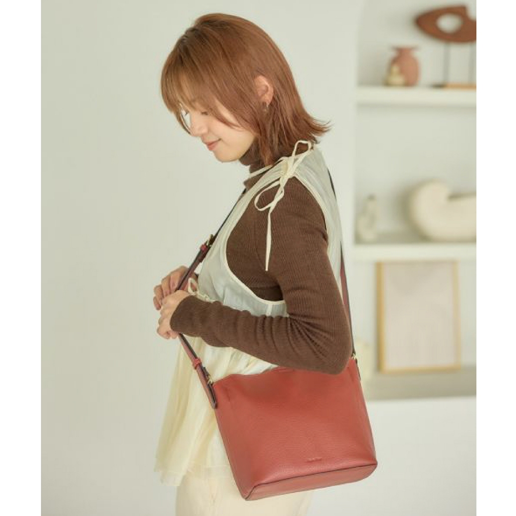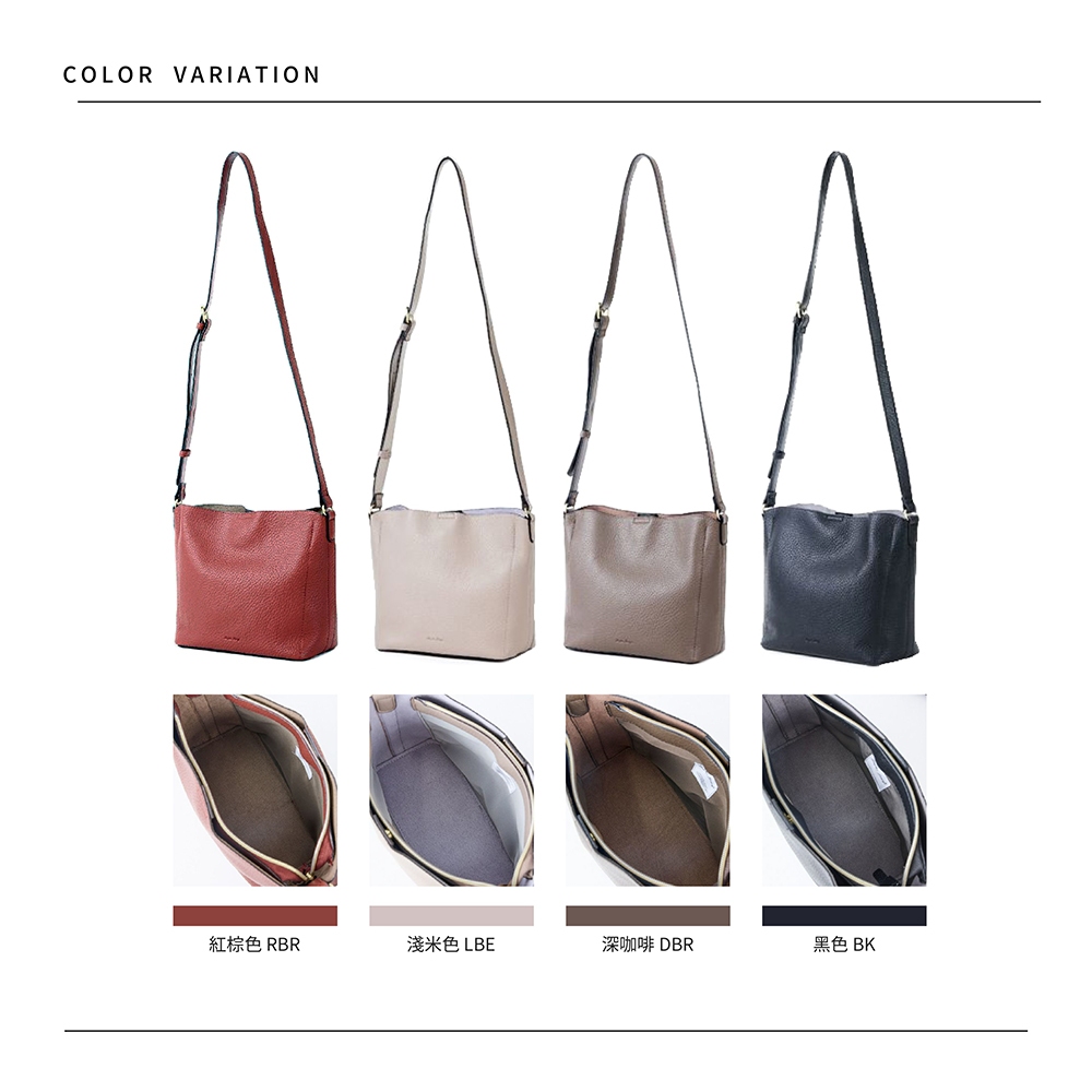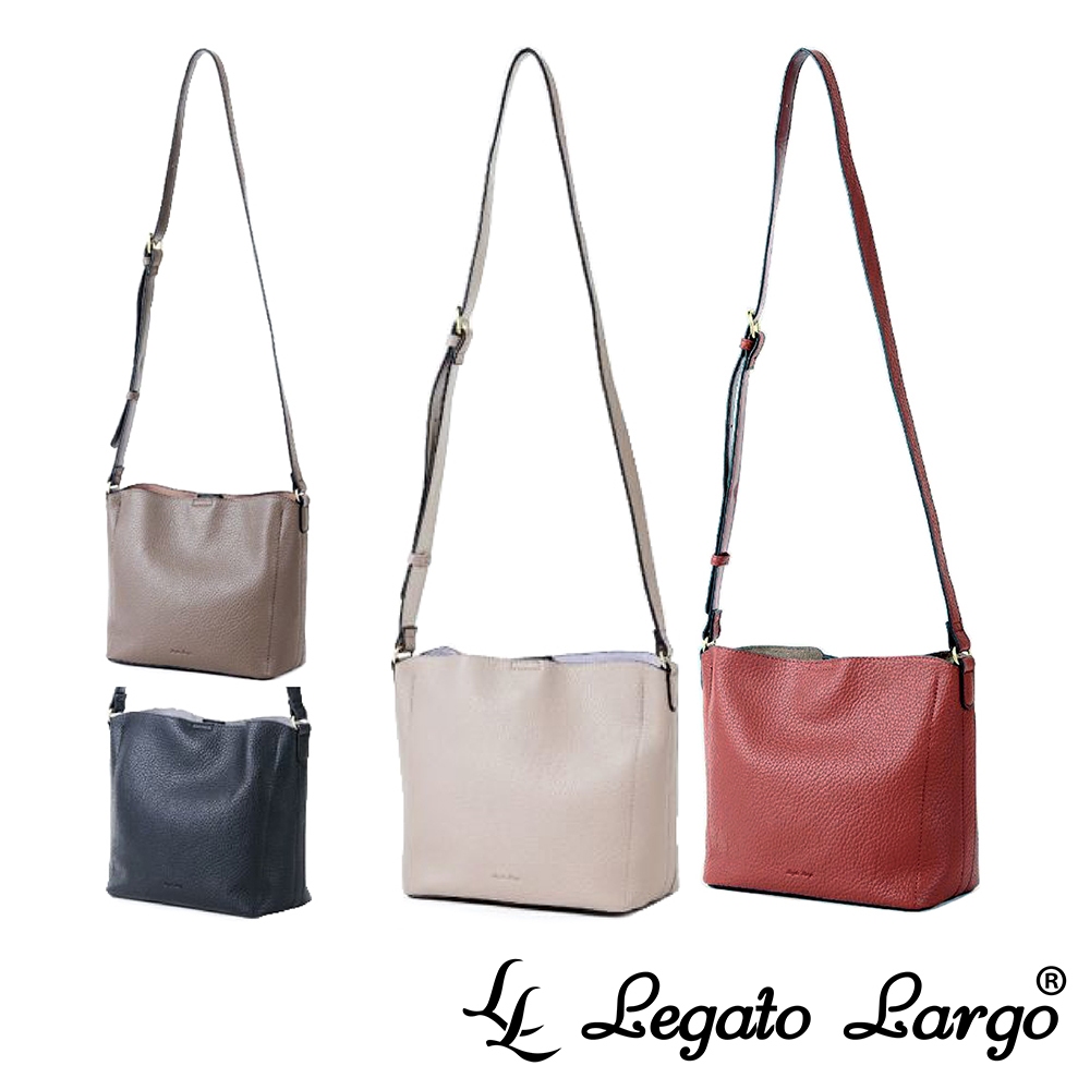 Legato Largo 輕盈純色荔枝紋皮革 斜背水桶包 (LH-D1372)紅棕色 RBR|黑色 BK|深咖啡 DBR|淺米色 LBELeatheranello 官方旗艦店