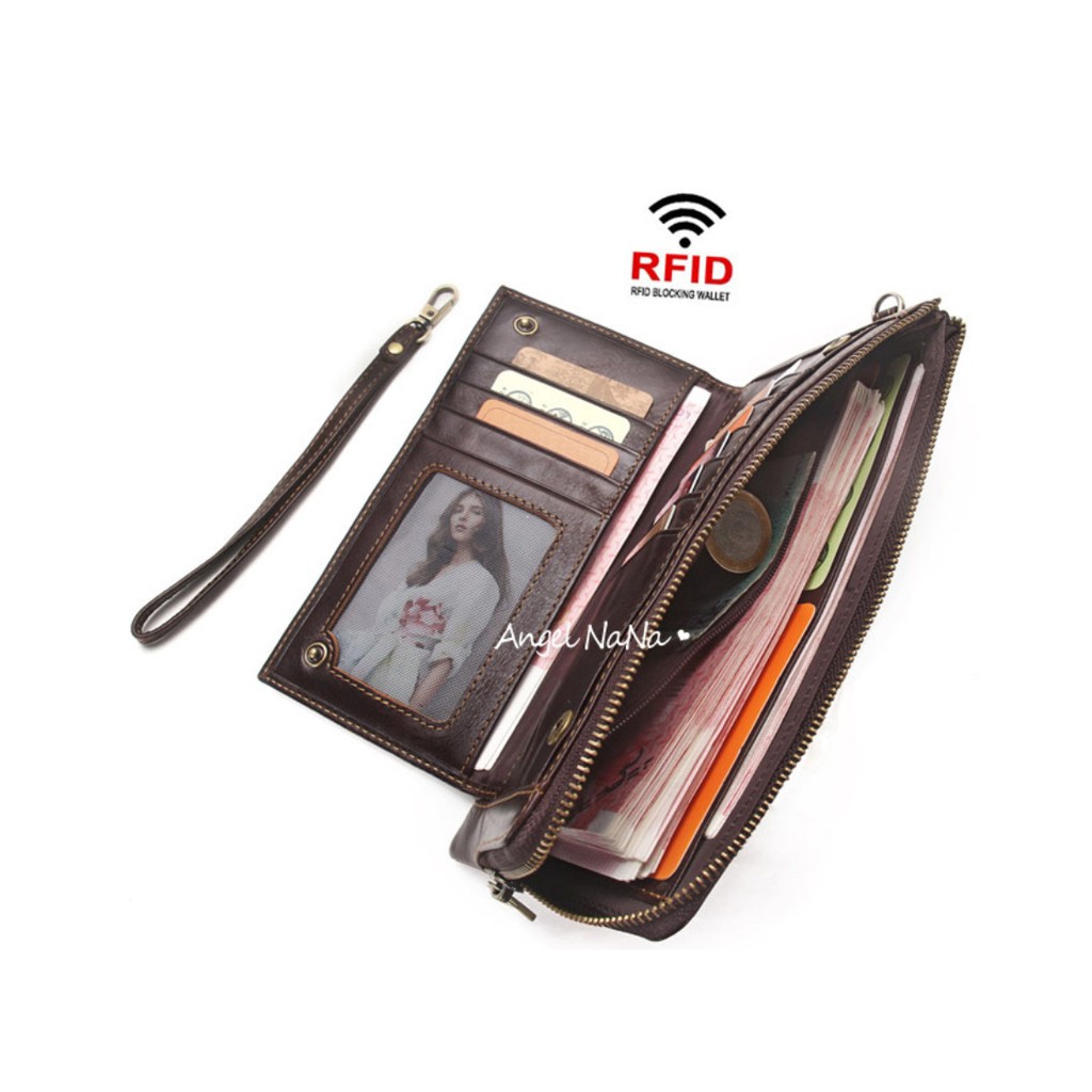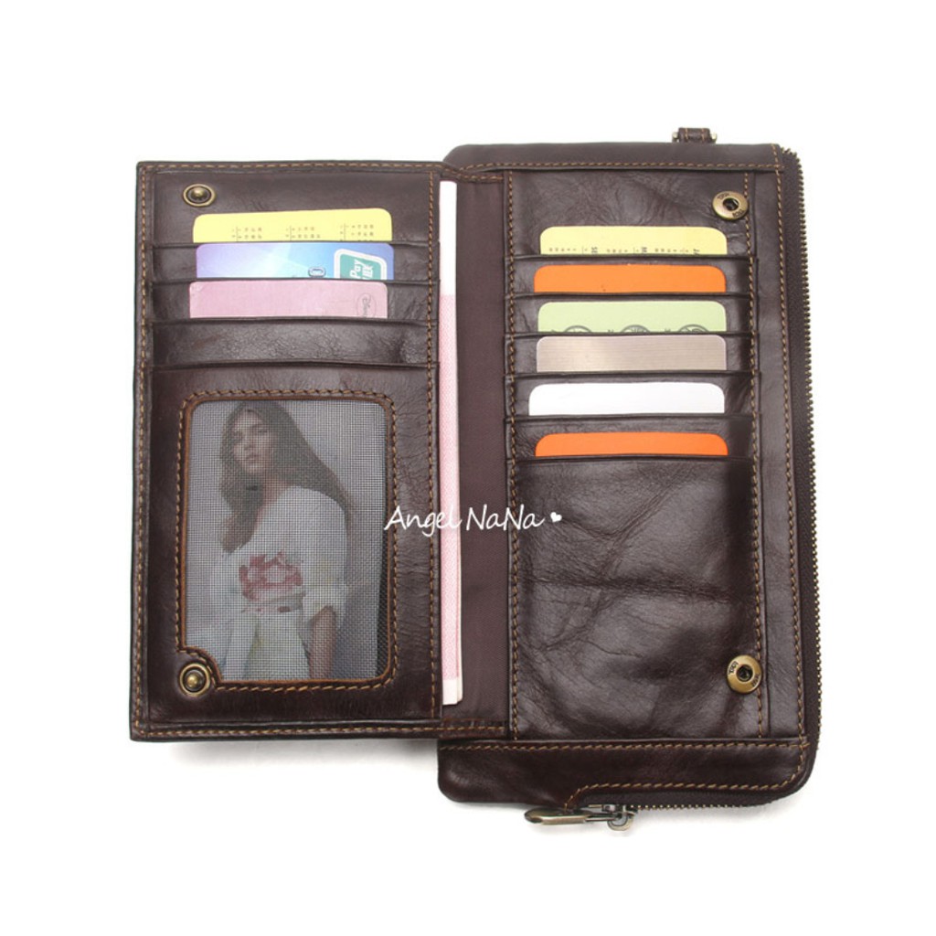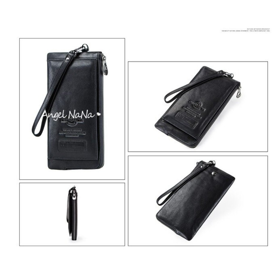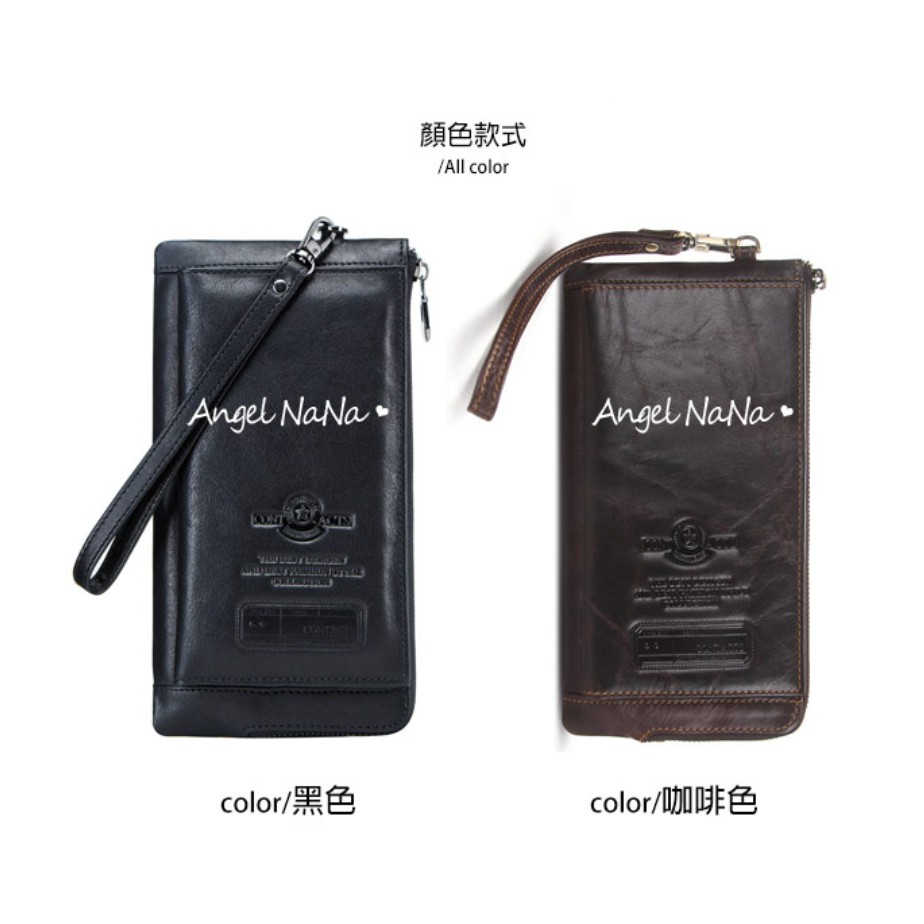 【AngelNaNa】真皮長夾-超薄大容量防RFID男皮夾錢包手機包附手腕帶 (SMA0294)黑色|咖啡Long WalletsAngelNaNa官方旗艦店