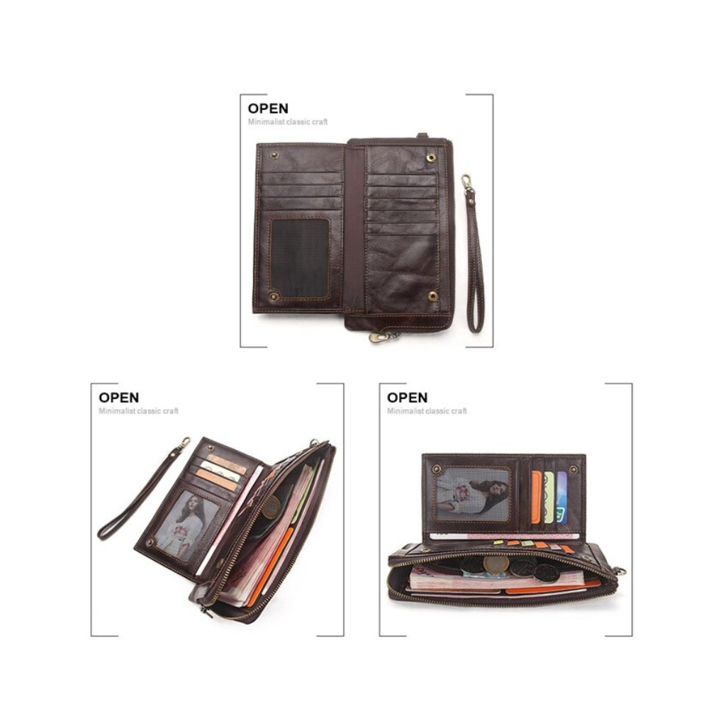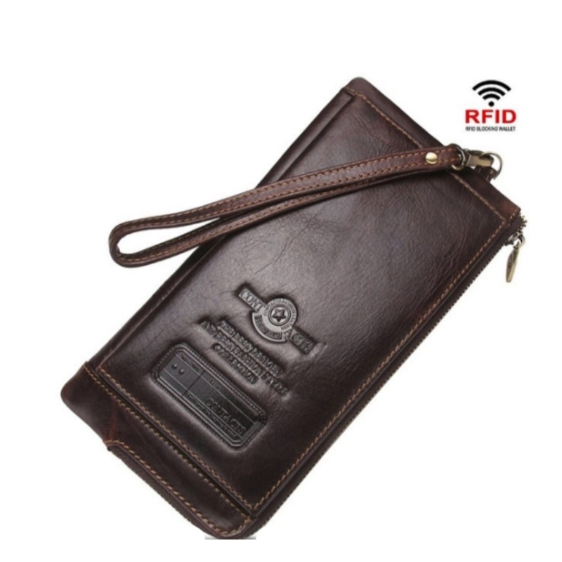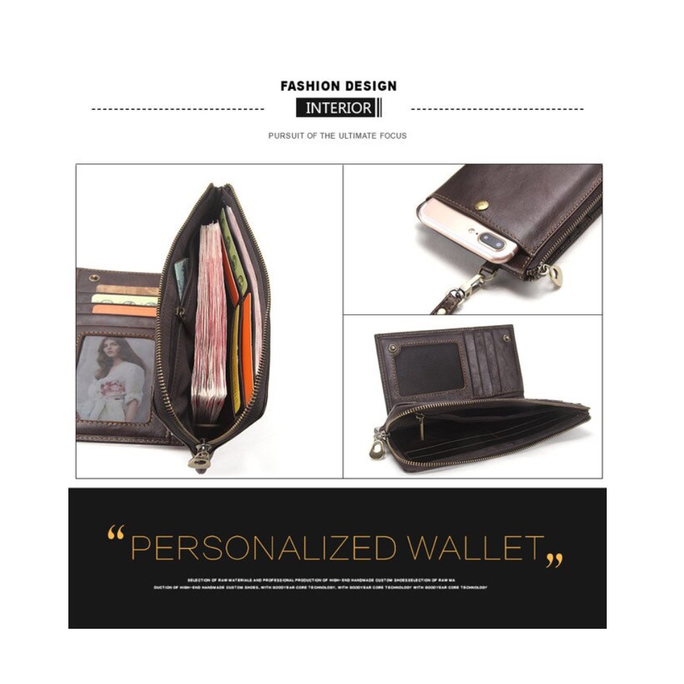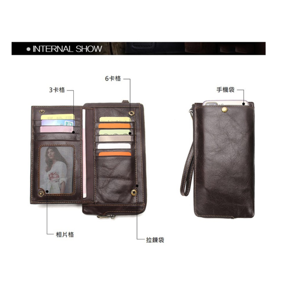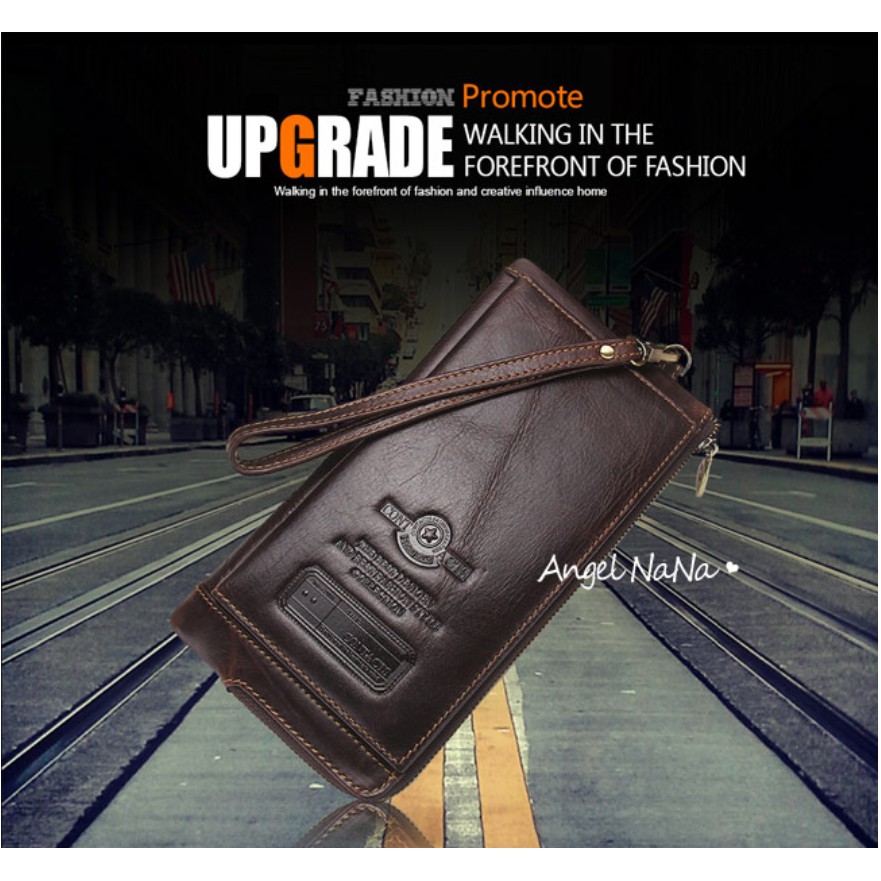 【AngelNaNa】真皮長夾-超薄大容量防RFID男皮夾錢包手機包附手腕帶 (SMA0294)黑色|咖啡Long WalletsAngelNaNa官方旗艦店