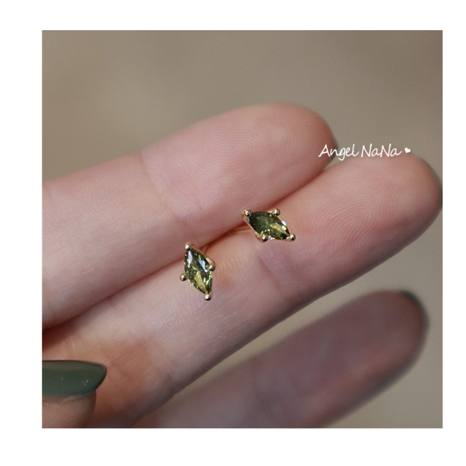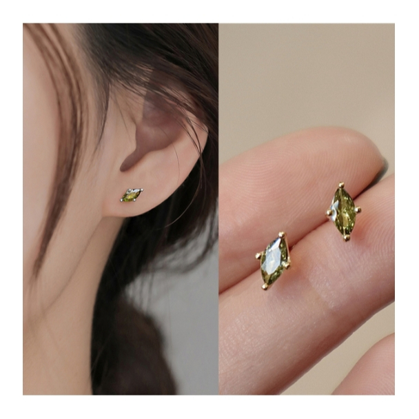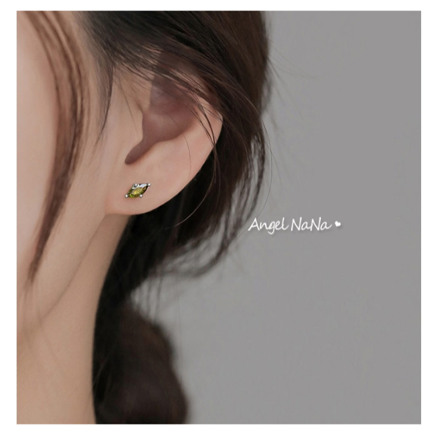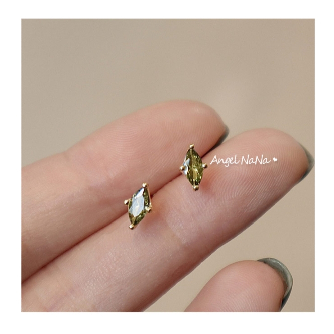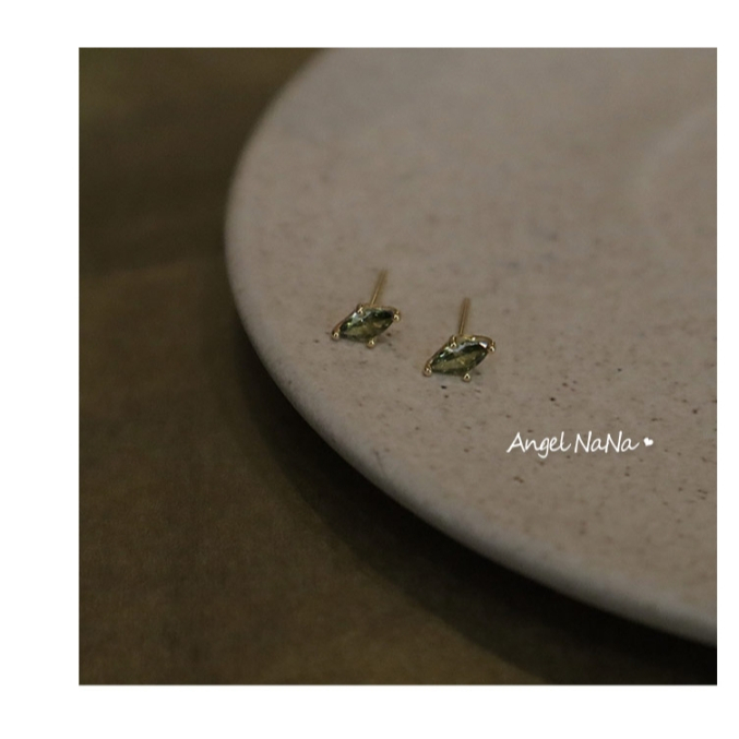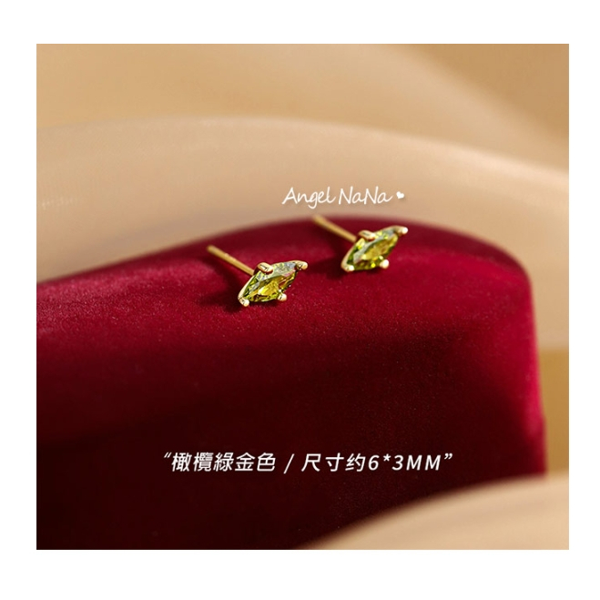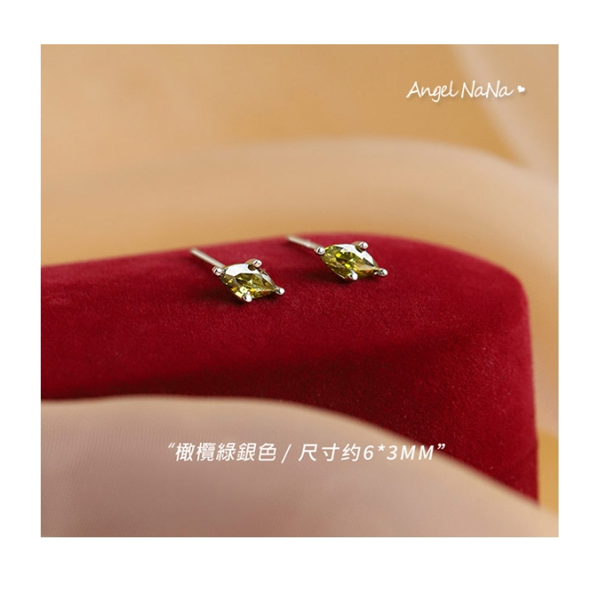 【AngelNaNa】S925純銀耳環-整體純銀橄欖綠寶石復古馬眼簡約耳針(SRA0639)白金|黃金AngelNaNa官方旗艦店