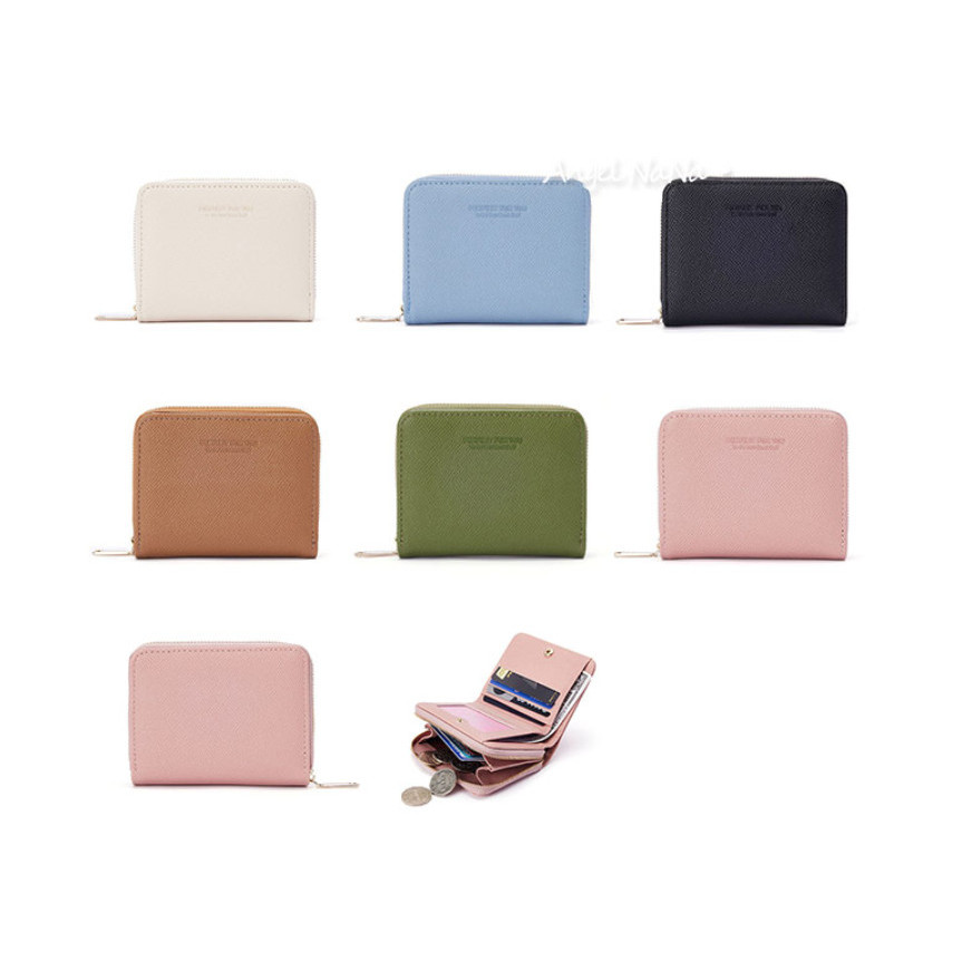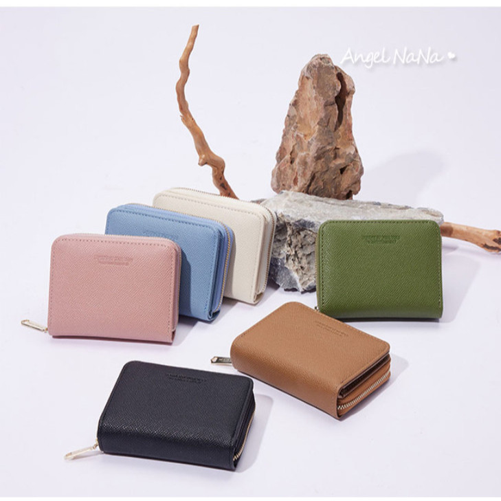 【AngelNaNa】短夾-簡約字母印字韓系兩折女皮夾零錢包(SMA0397)粉紅色|黑色|藍色|棕色|米白色|綠色Bifold & Trifold WalletsAngelNaNa官方旗艦店