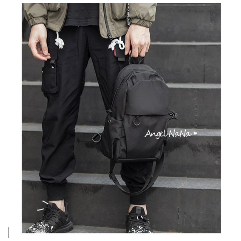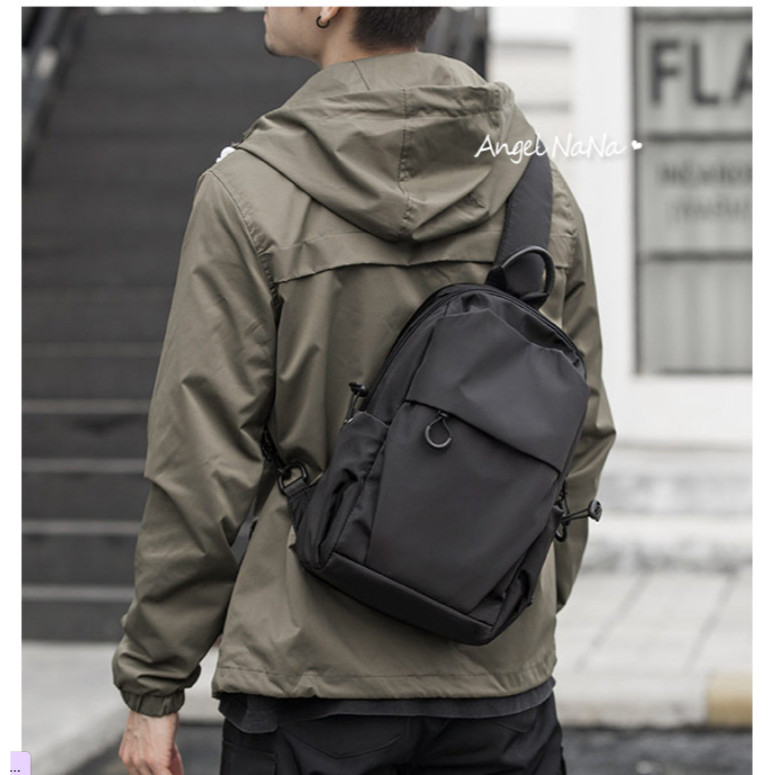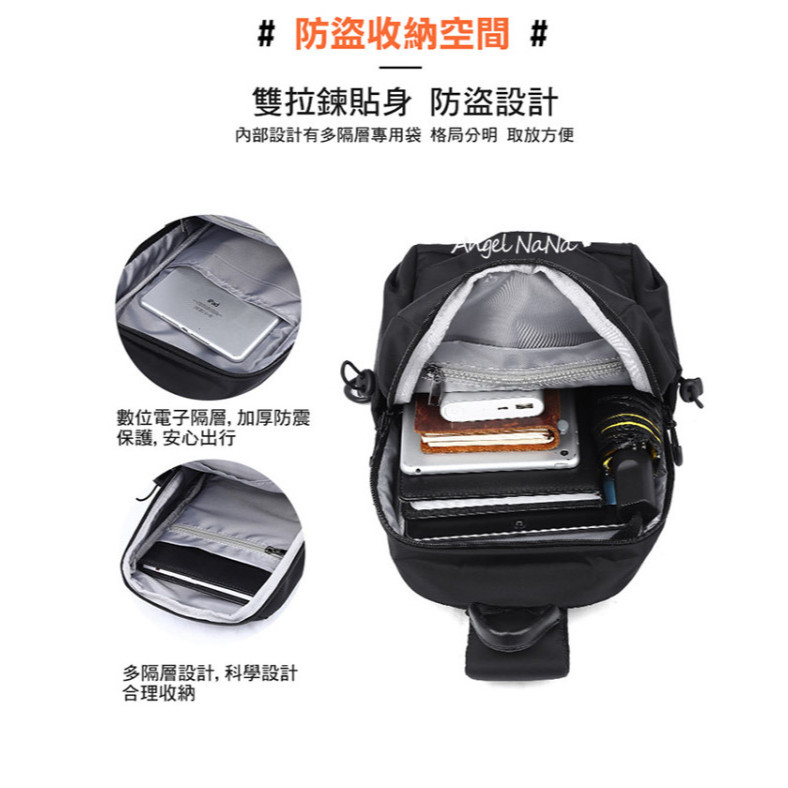 【AngelNaNa】胸包-韓版潮男防潑水休閒斜背包胸包10吋平板(SBA0411)黑色AngelNaNa官方旗艦店