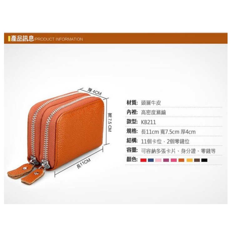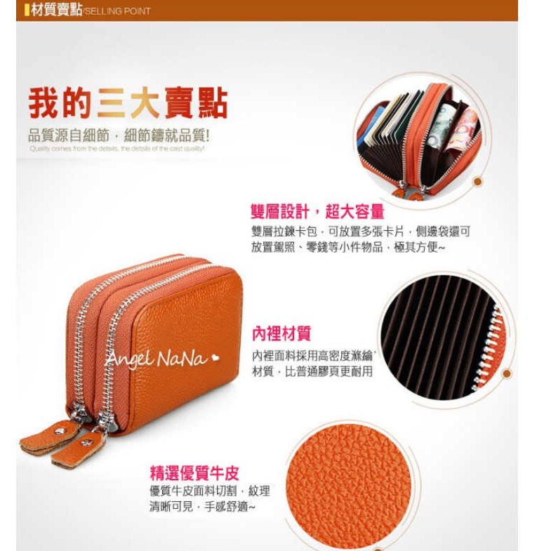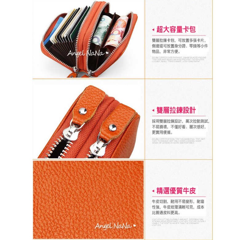 【AngelNaNa】真皮卡包-頭層牛皮雙拉鏈大容量風琴卡片包皮夾零錢包硬幣包女夾 (SMA0211)黑色|粉紅|咖啡|紫色|黃色|藍色|棕色|玫紅Coin Holders & PursesAngelNaNa官方旗艦店