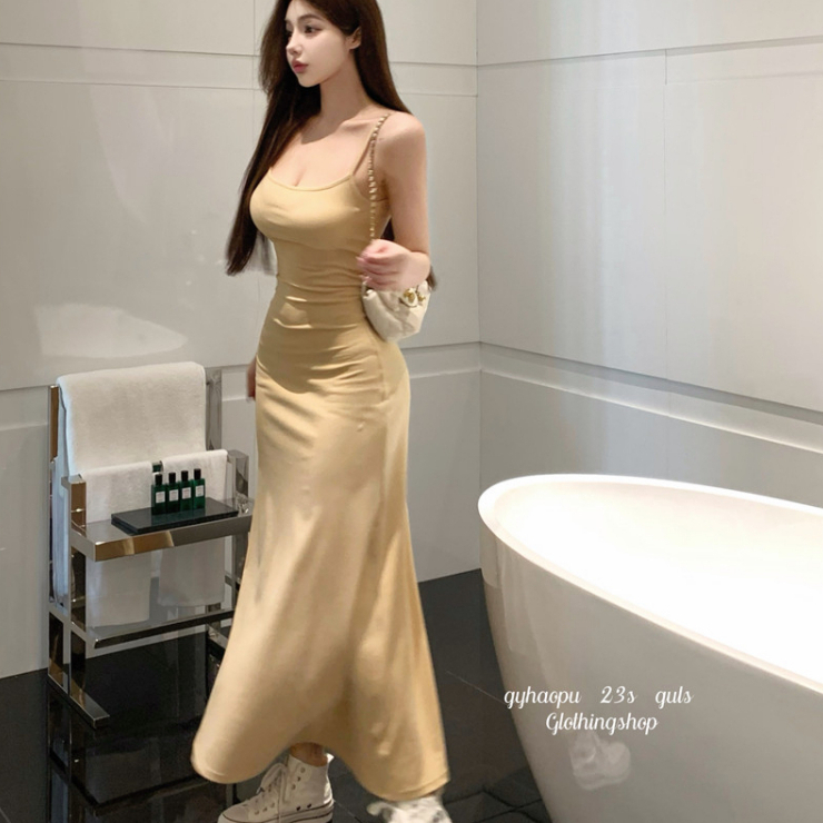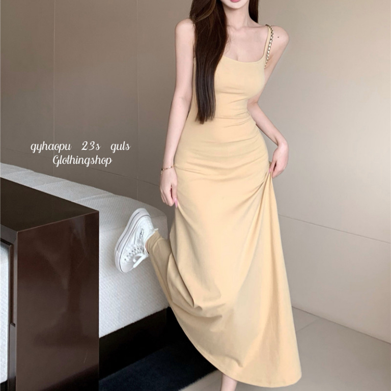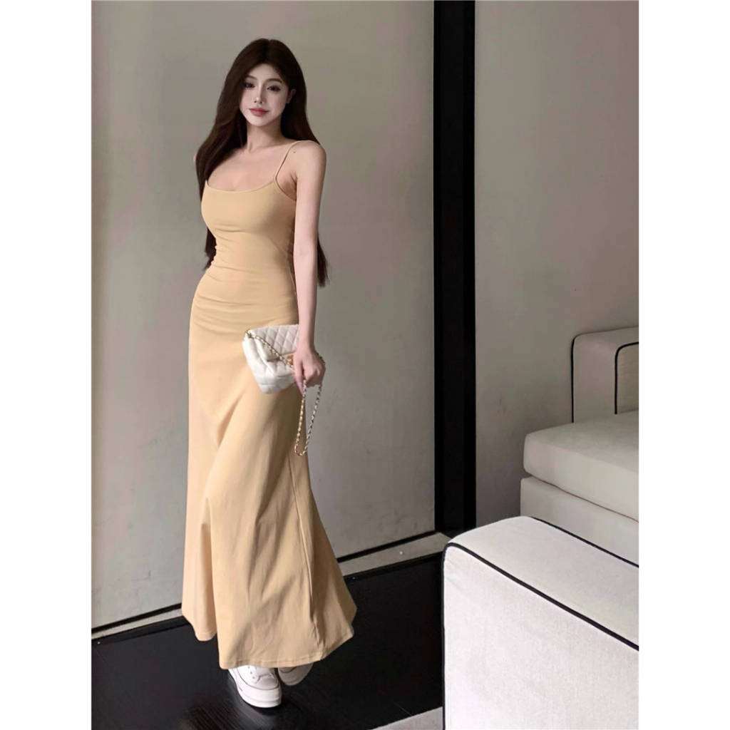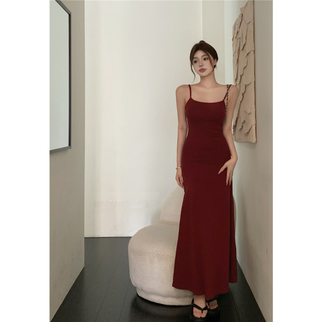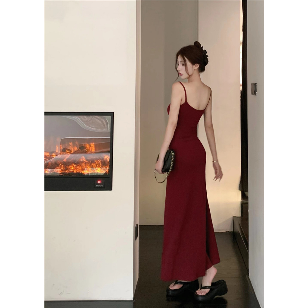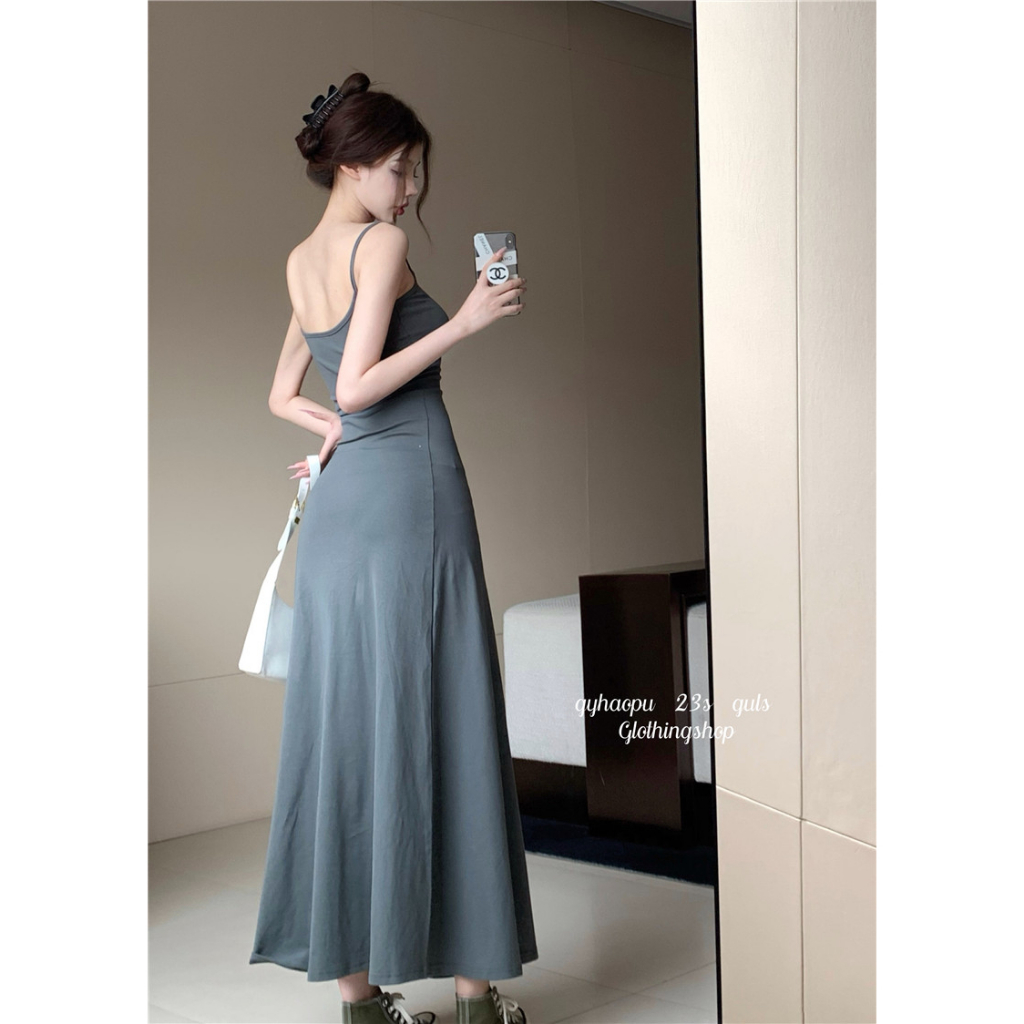 ANNE|出清中|520降249丨細肩帶彈性A字裙洋裝【AD10285】爆乳洋裝 長裙 夏天洋裝 a字裙 細肩帶洋裝灰|酒紅|杏ANNE 孕婦裝 孕婦內衣褲 專櫃平替