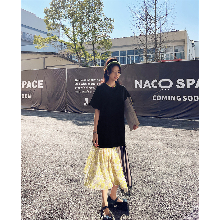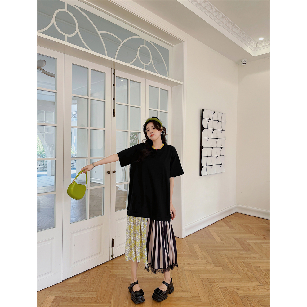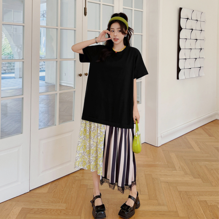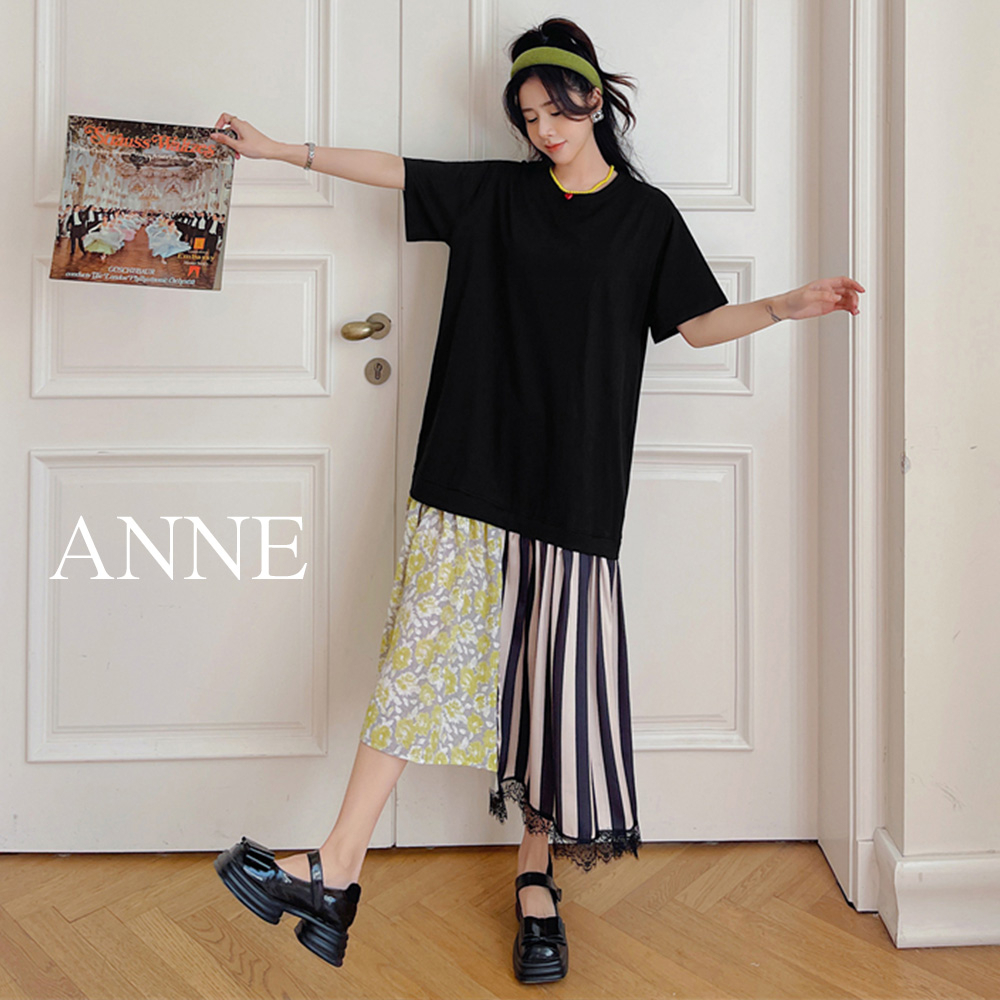 ANNE|出清中|500降350|假兩件短袖洋裝【AD102132】短袖洋裝 拼接洋裝 假兩件 洋裝 長裙 連身裙XL|2XL|3XL|LANNE 孕婦裝 孕婦內衣褲 專櫃平替