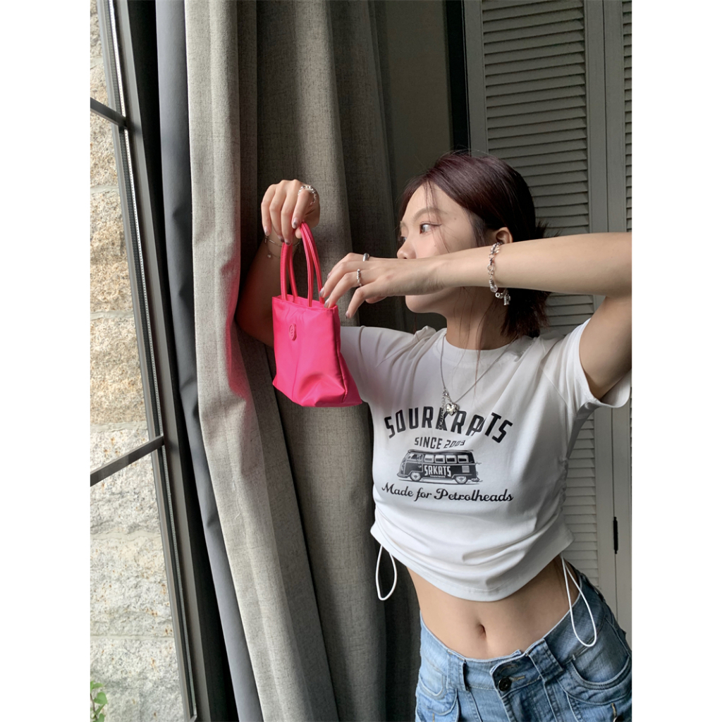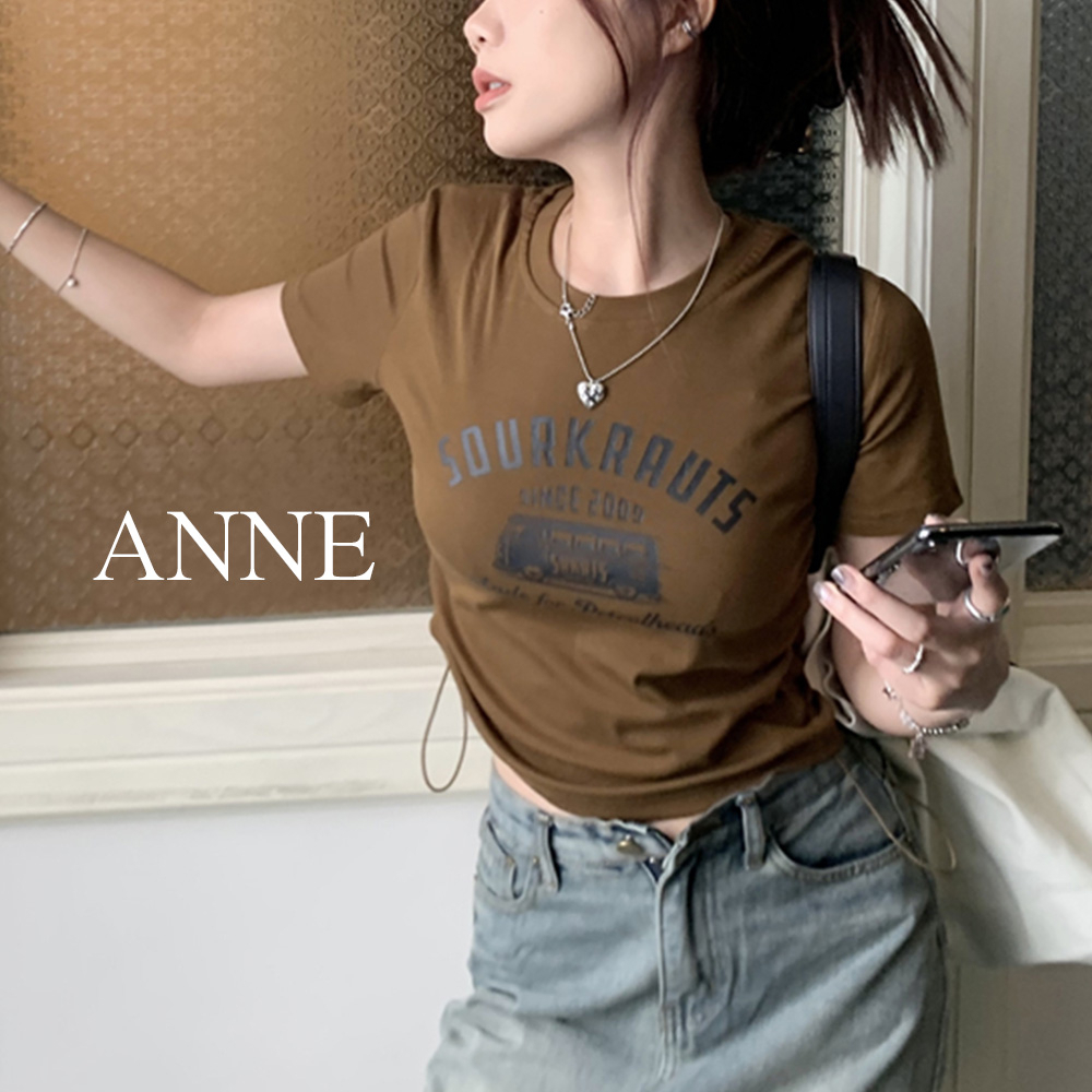 ANNE|出清中|174降85| 女短版腰間抽繩短袖t恤【AT21115】春夏 設計款 復古圖案 短版 露腰 短版 女白|咖啡|黑T-shirtsANNE 孕婦裝 孕婦內衣褲 專櫃平替