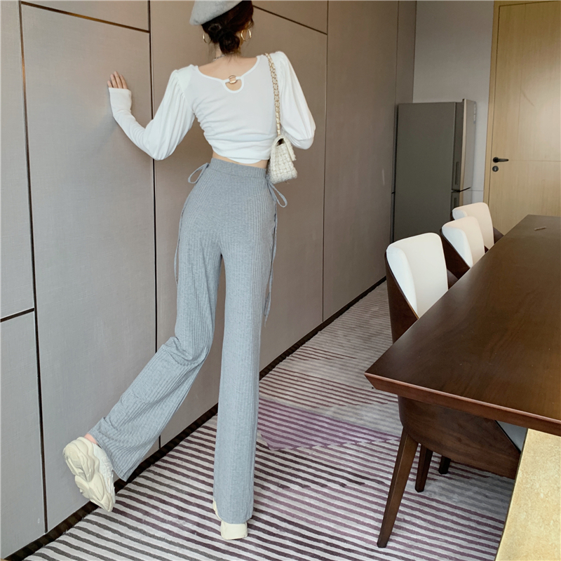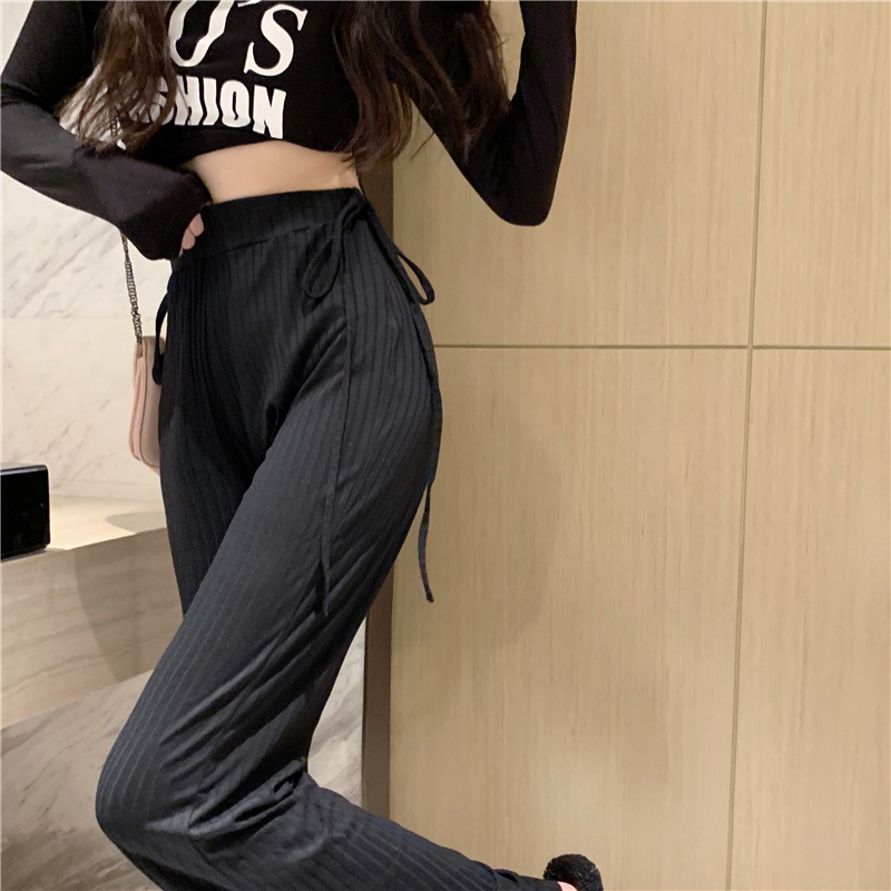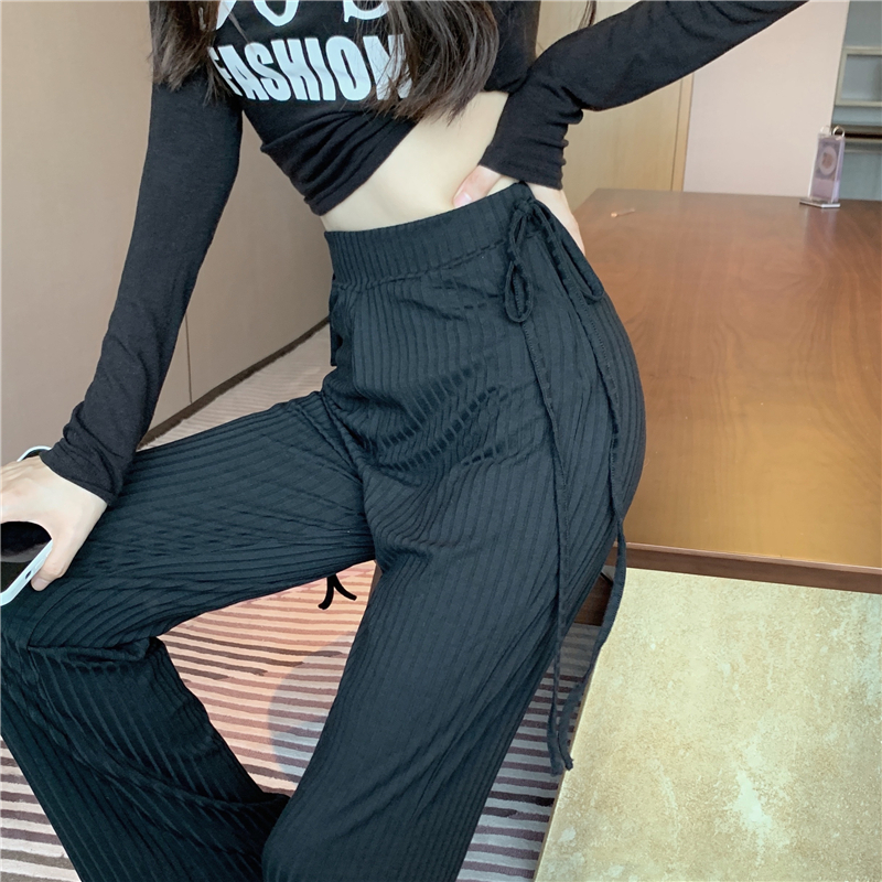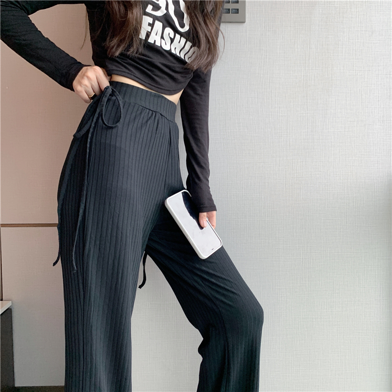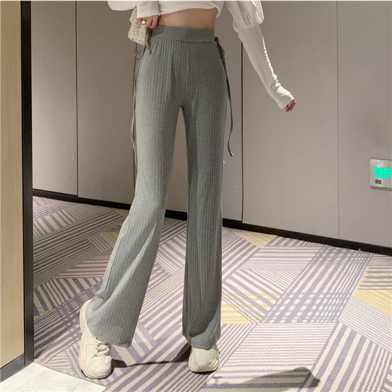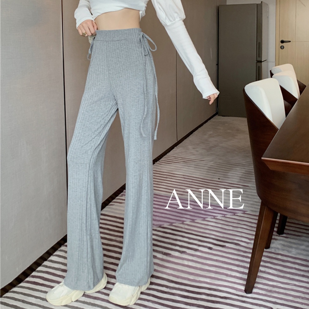 ANNE|出清中|234降129| 棉褲 棉長褲 針織坑條【AP60229】抽繩面褲 長棉褲 高腰棉褲 高腰喇叭褲 寬鬆黑|灰PantsANNE 孕婦裝 孕婦內衣褲 專櫃平替