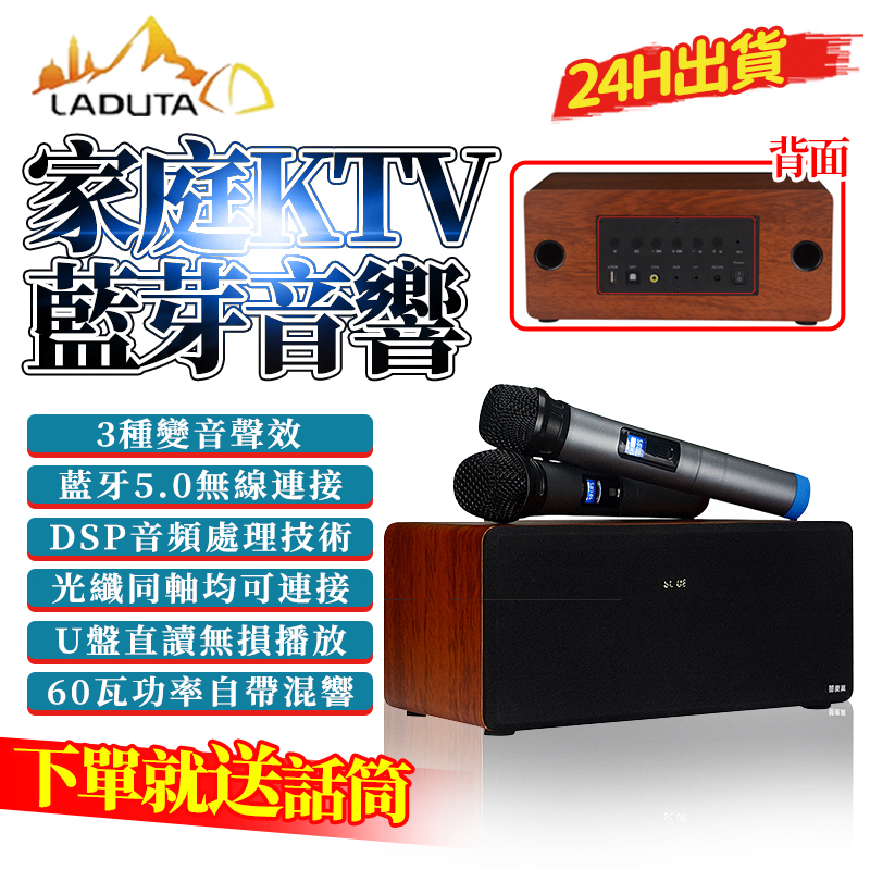 【LADUTA 拉布塔】 藍芽雙麥克風唱歌音箱無線K歌 家庭KTV 雙麥 藍牙音響 露營生日禮 會議主持 野餐 音響桃木色【LADUTA 拉布塔】官方旗艦店