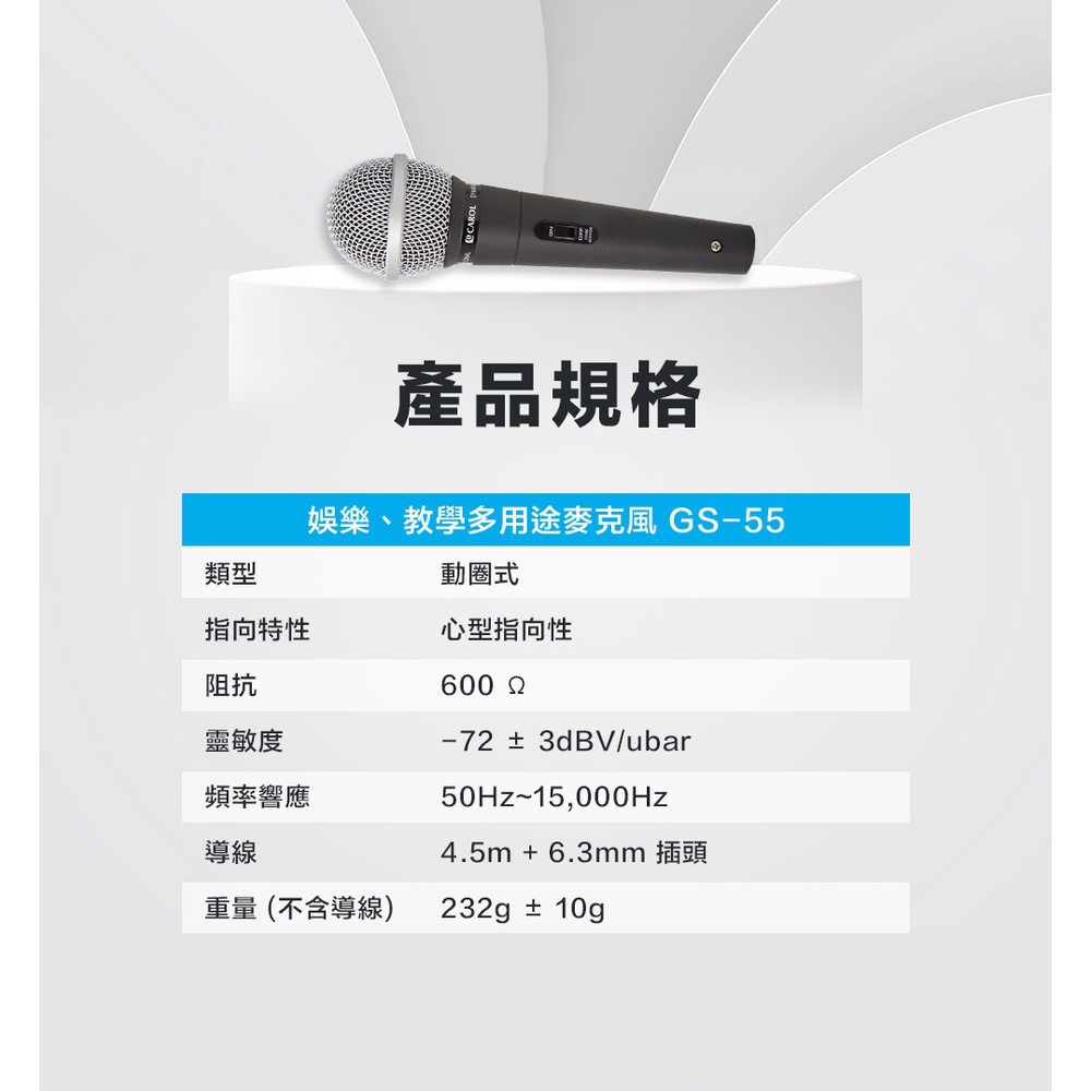 【CAROL】K歌/教學兩用麥克風 GS-55 – 捕捉原音不失真 教師節熱銷黑色【CAROL 佳樂台灣官方旗艦店】 麥克風 | 直播 | 電聲科技