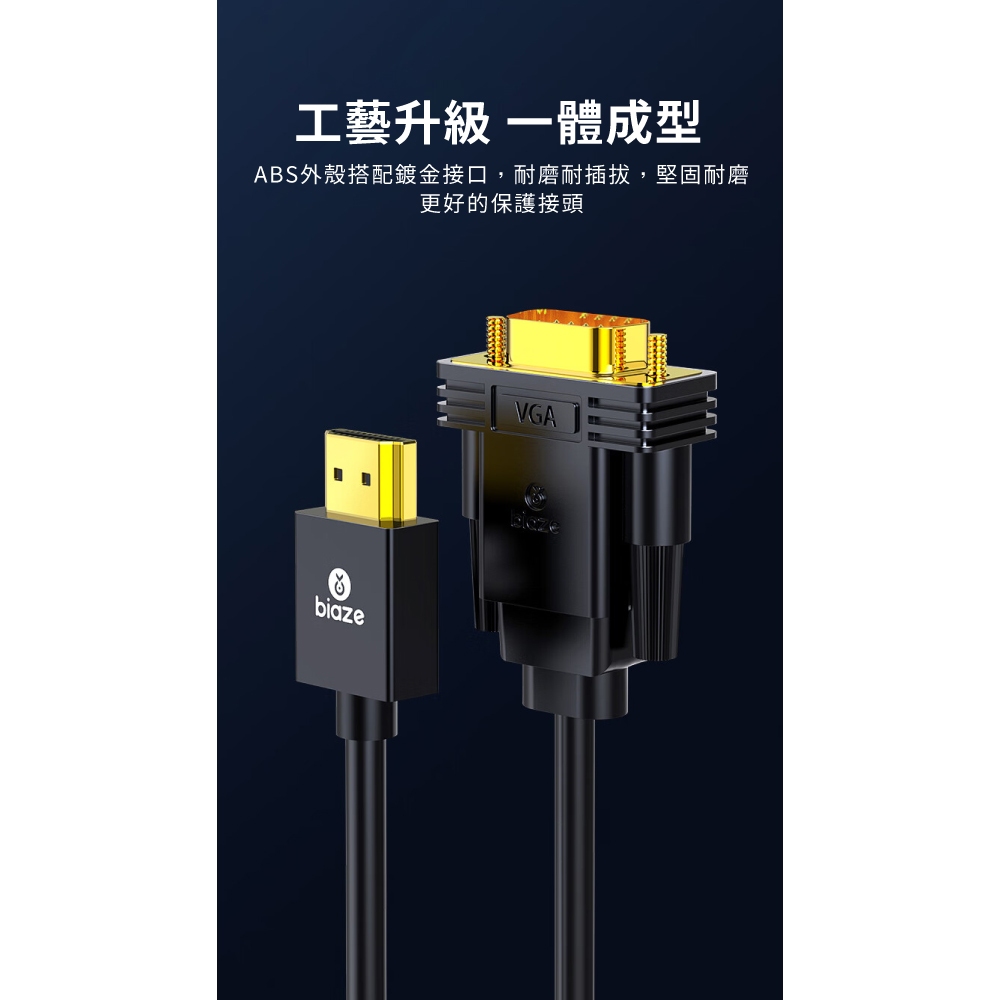 biaze畢亞茲 HDMI轉VGA線轉換器 高清視頻轉接線 1-5m VGA轉換器 HDMI轉換器 VGA轉換5m|1m|1.8mBIAZE畢亞茲 品牌旗艦館|台灣總代理