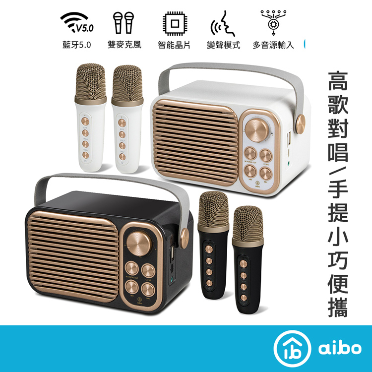 aibo 行動KTV 無線雙麥克風 藍牙音響歡唱組【現貨】無線藍牙喇叭 K歌神器 藍牙喇叭 藍牙麥克風 插卡喇叭經典灰|經典白|全新福利品-經典灰(無保固)aibo 3C生活館
