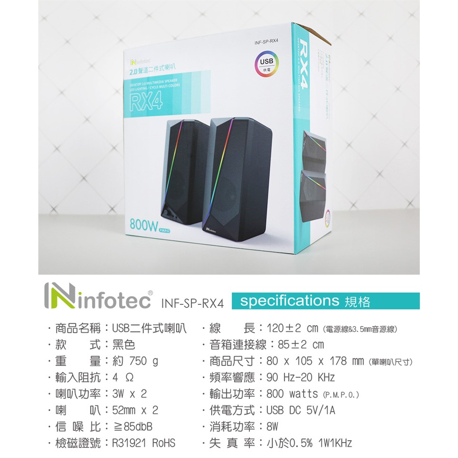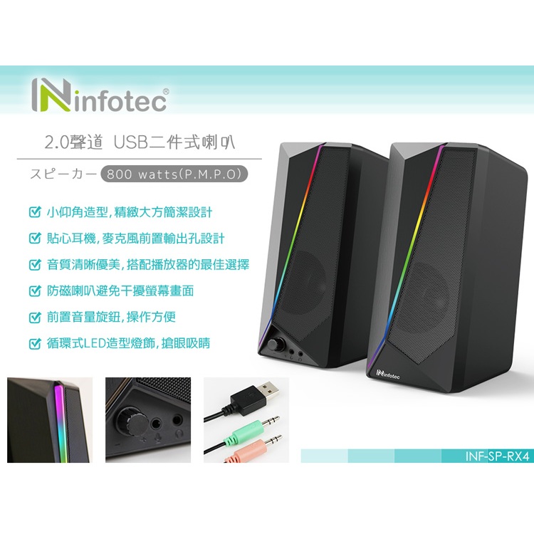 infotec SP-RX4 800W(P.M.P.O) 2.0聲道USB二件式喇叭【現貨】電腦喇叭 USB音響全新品Speakersaibo 3C生活館