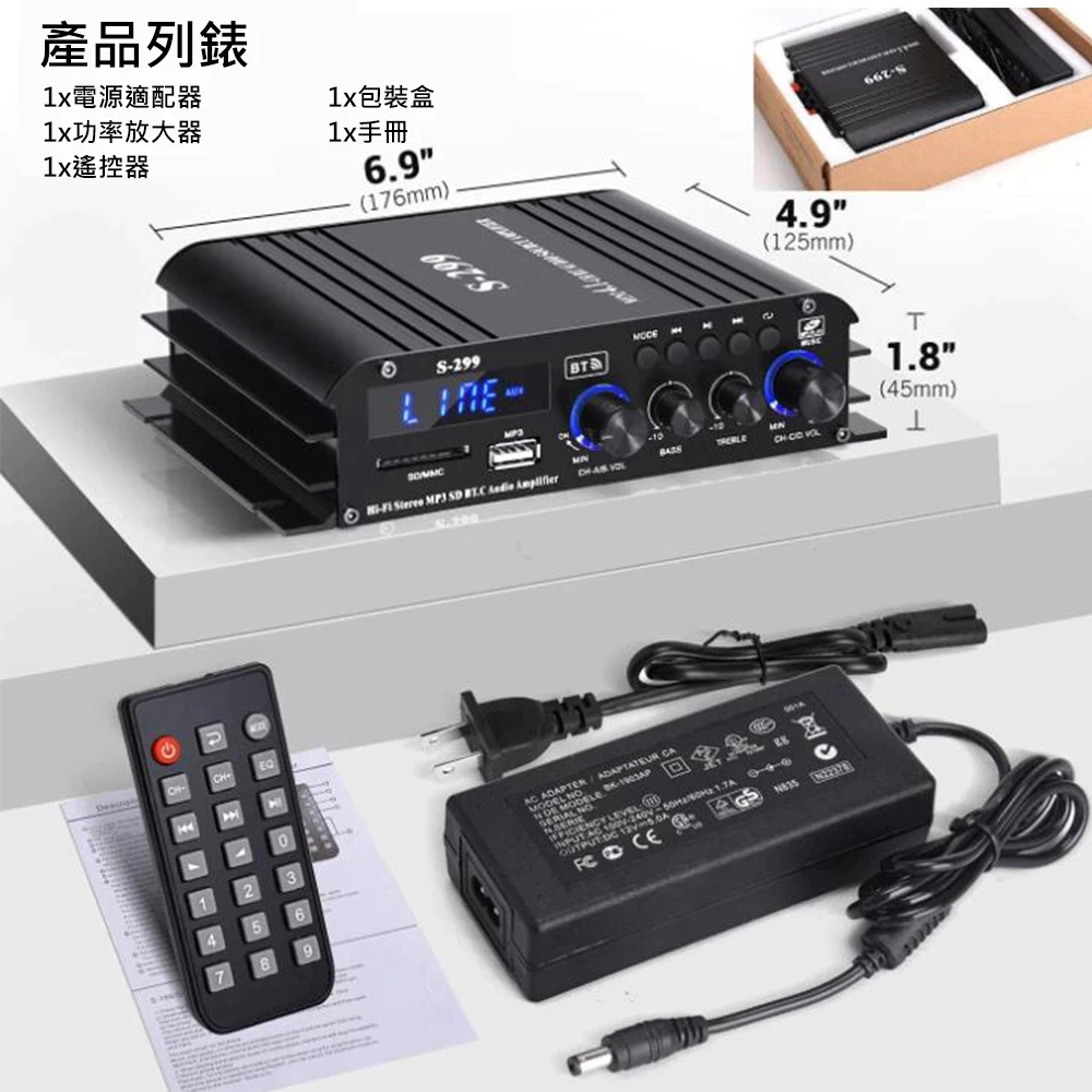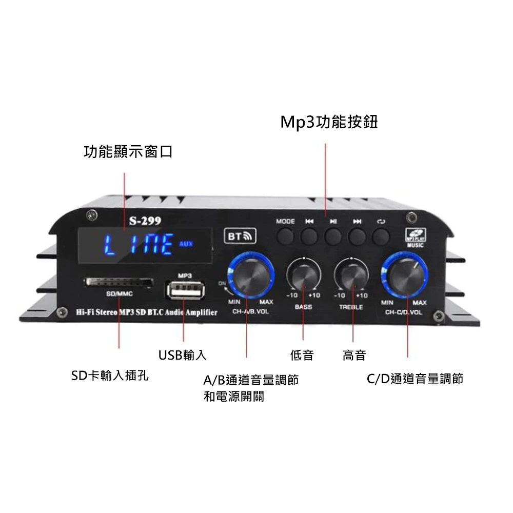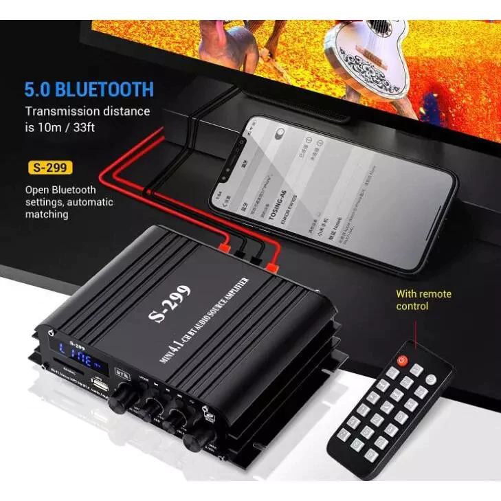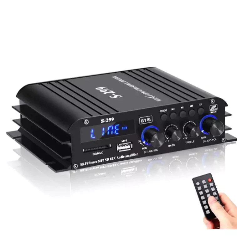 【津久見】24H快速出貨 擴大機 擴大器 四聲道功放機 藍牙功放機 車載功放 家用商用車用 S299S299(標配遙控器)|S299(標配遙控器+音頻線)|S299(標配遙控器+車載音頻線)AV Receivers【津久見】官方旗艦店