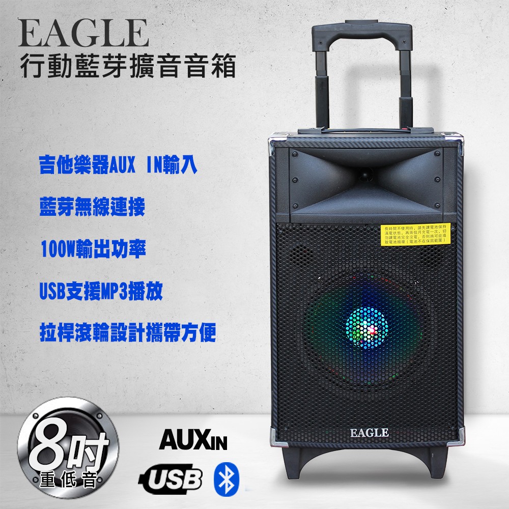 十倍蝦幣【EAGLE】大功率8吋拉桿式行動藍芽音箱 ELS-178 藍芽喇叭 有線無線版 街頭藝人吉他輸入展場叫賣唱歌ES-178/有線版|ES-178UB/無線版含無線麥克風*2Speakers【E-MAN】電氣男數位購物商城