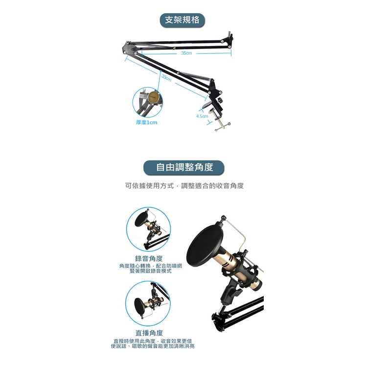 懸臂支架 附防噴網 麥克風 可任意調節兩臂角度 螺旋鎖緊底座穩固不滑動 防噴網有效過濾人聲所發出的噴聲雜音懸臂支架 附防噴網 麥克風 可任意調節兩臂角度 螺旋鎖緊底座穩固不滑動 防噴網有效過濾人聲所發出的噴聲雜音2魔 攝影