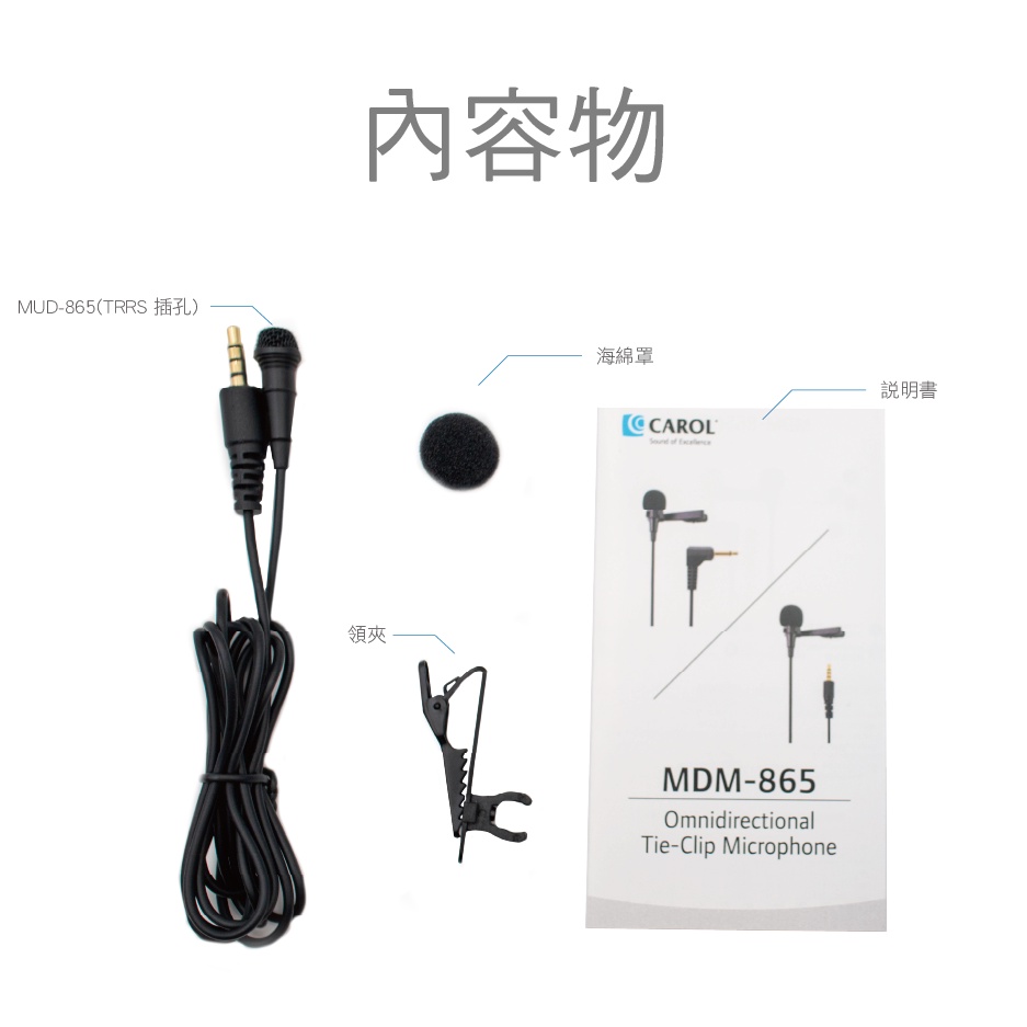 【CAROL】領夾式麥克風 MDM-865(TRRS版本)適用平板、手機、筆電(ALL-IN-ONE 輸入)【CAROL】領夾式麥克風 MDM-865(TRRS版本)適用平板、手機、筆電(ALL-IN-ONE 輸入)【CAROL 佳樂台灣官方旗艦店】 麥克風 | 直播 | 電聲科技