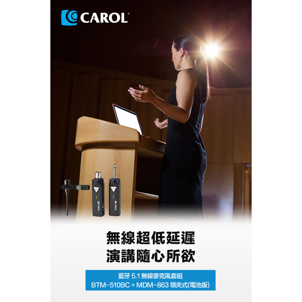 【CAROL】無線藍牙麥克風套組升級版 (電池版) BTM-510BC+MDM-863 領夾式教學演講 藍芽麥克風BTM-510BC 領夾式【CAROL 佳樂台灣官方旗艦店】 麥克風 | 直播 | 電聲科技