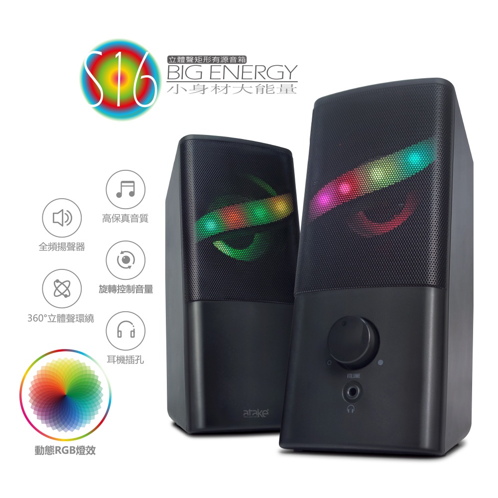 【atake】S16 多媒體立體聲喇叭 RGB喇叭/電競喇叭/電腦喇叭全新品|福利品Speakersatake台灣官方旗艦店